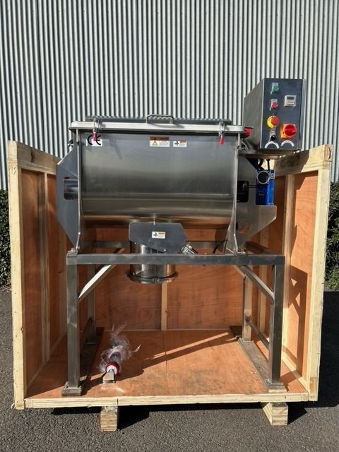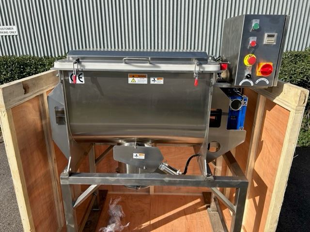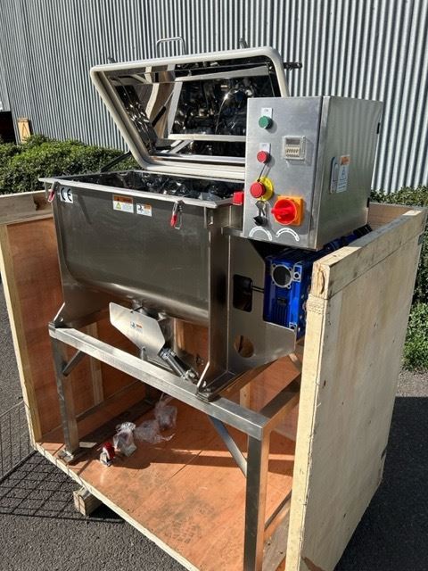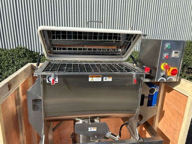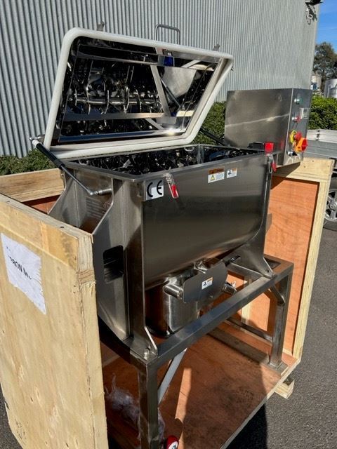 NEW – 100L Stainless steel ribbon blender with double helix ribbon for more efficient mixing.