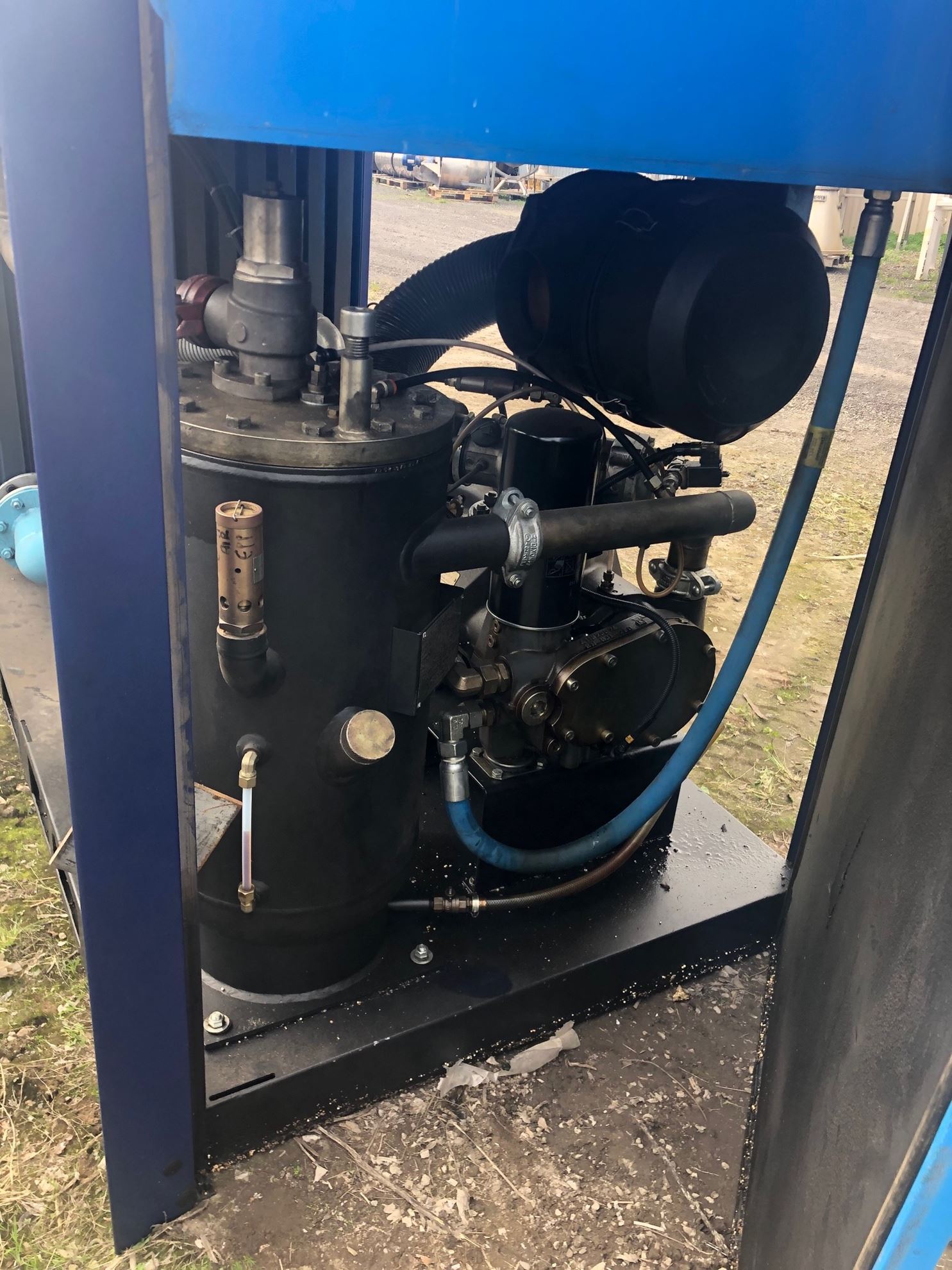 Comp Air Model L75G air-cooled rotary screw air compressor c/w acoustic enclosure and aftercooler. Incorporating the DELCOS XL intelligent control system ensures reliable operation and protects your investment by continuously monitoring the operational parameters.