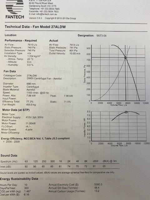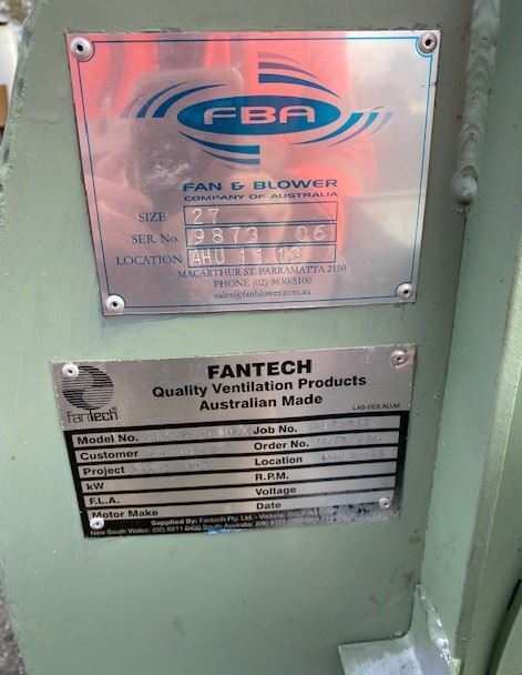Fantech Air Fan. 11 kw 27 inch dual inlet.