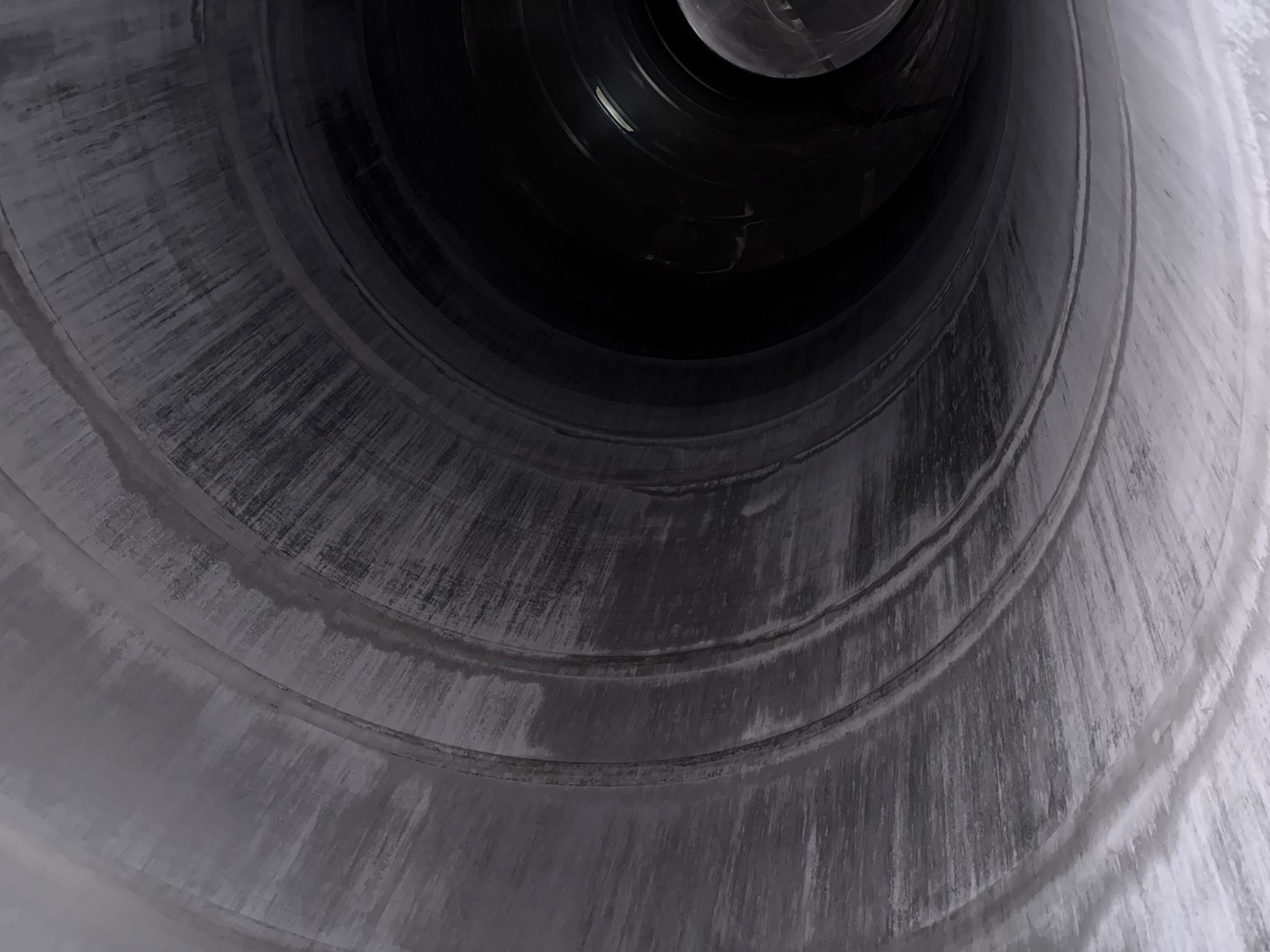 The Silo is free standing and secured to a concrete floor with the man whole and connection points located inside the factory wall.