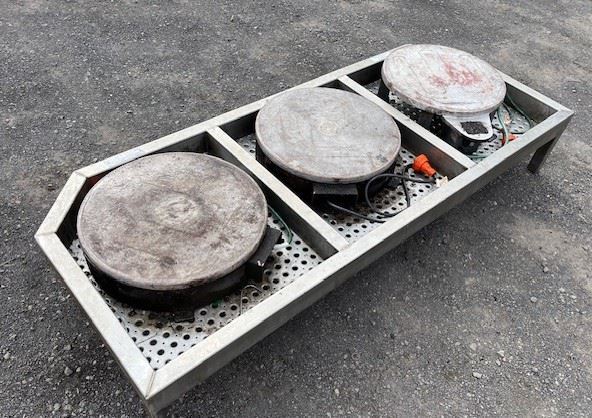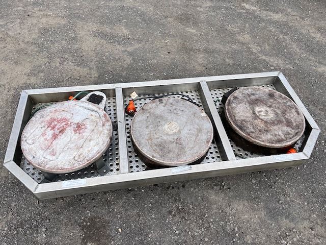 Base drum heater. 2 pads designed to heat 44 gallon drums. Although Photo shows three only 2 are available.