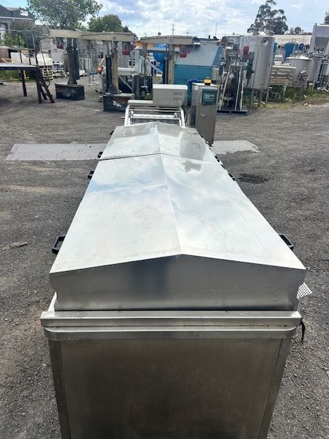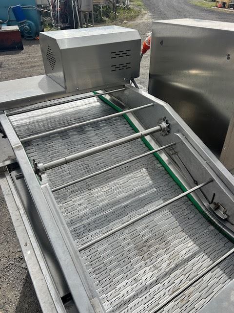 The conveyor is variable speed and has two st/steel hoods to contain the steam.