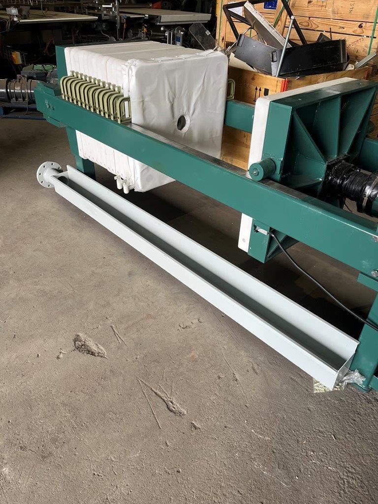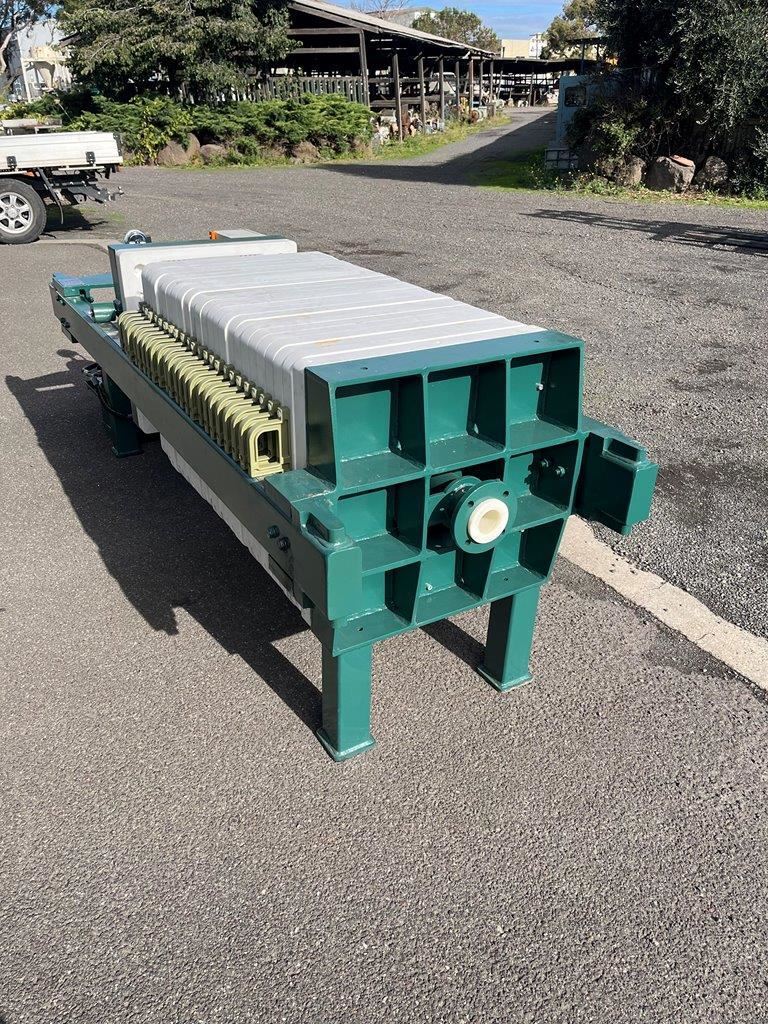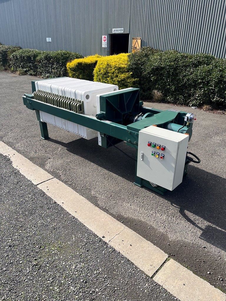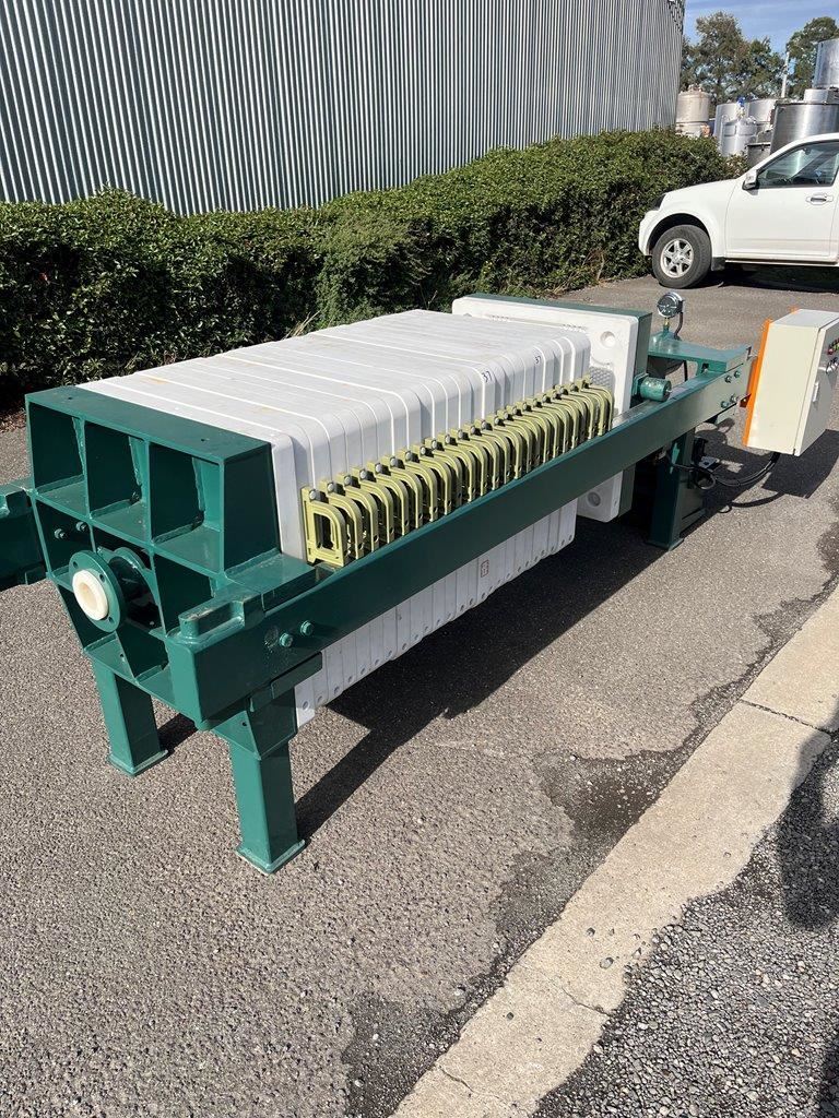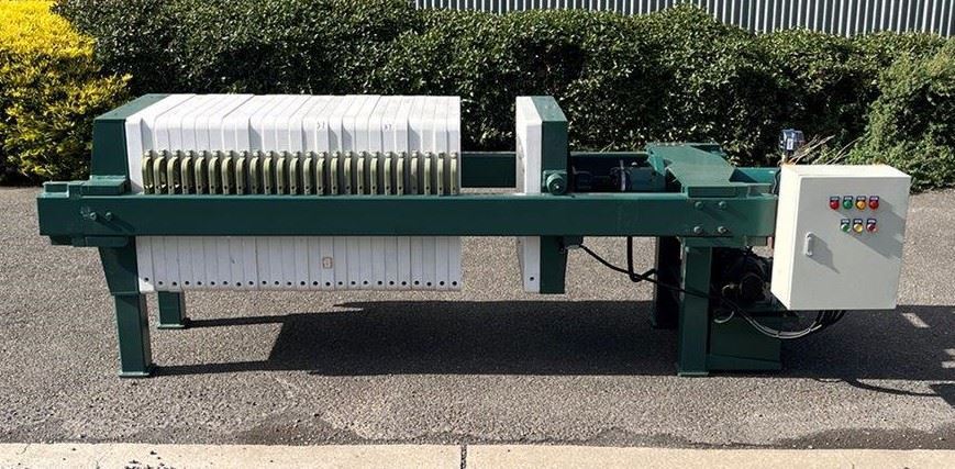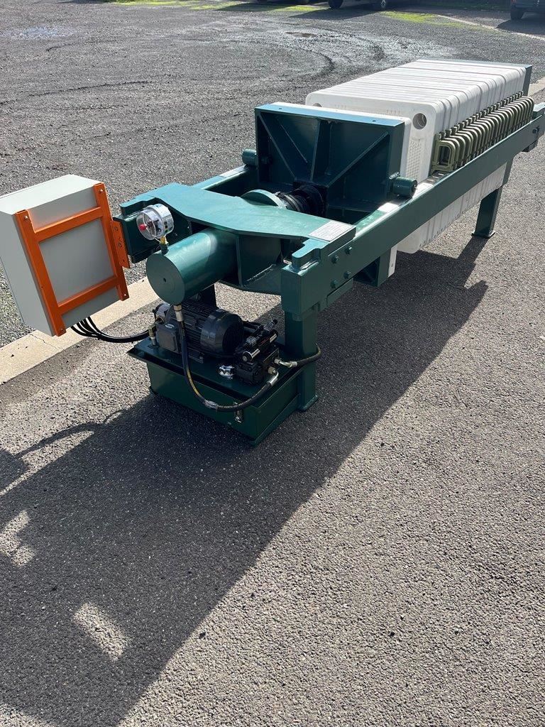 An industrial filter press is a tool used in seperation processes specifically to separate solids and liquids. The machine stacks many filter elements and allows the filter to be easily opened to remove the filtered solids, and allows easy cleaning or replacement of the filter media.