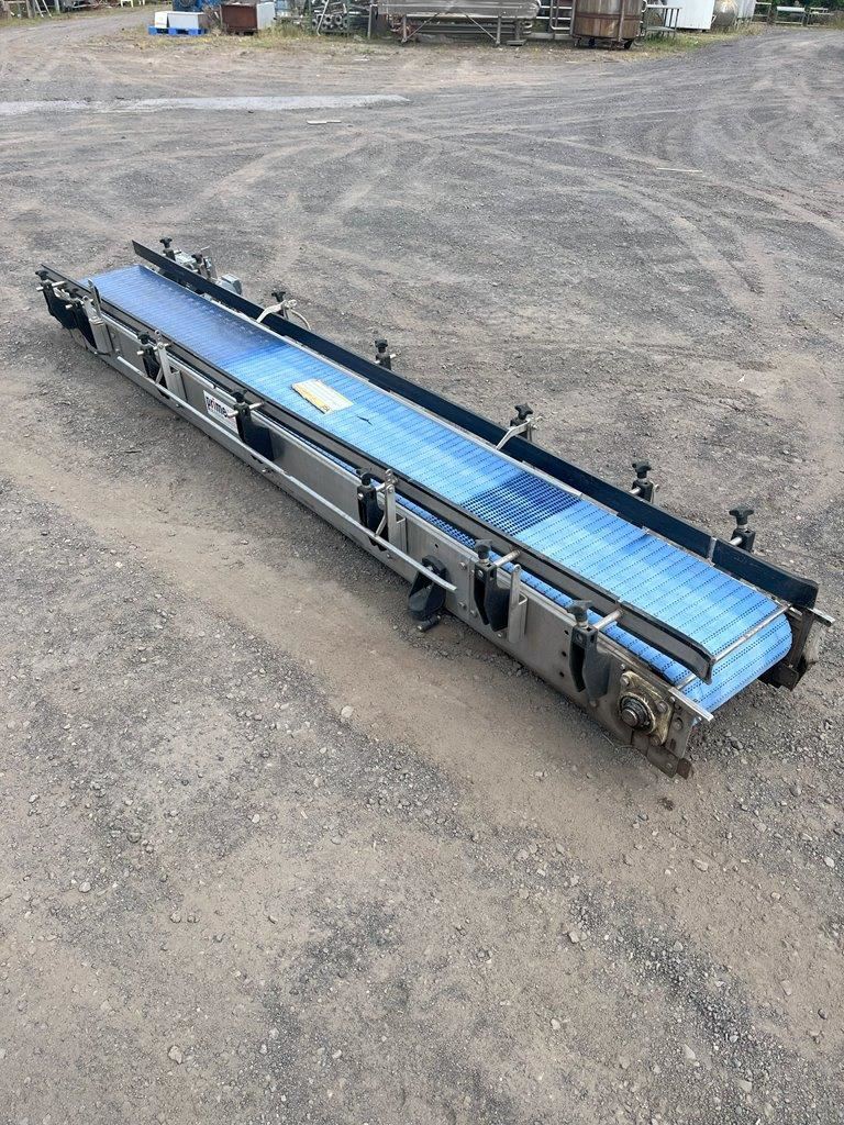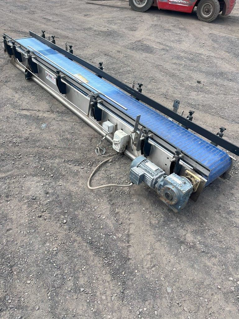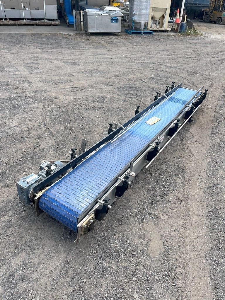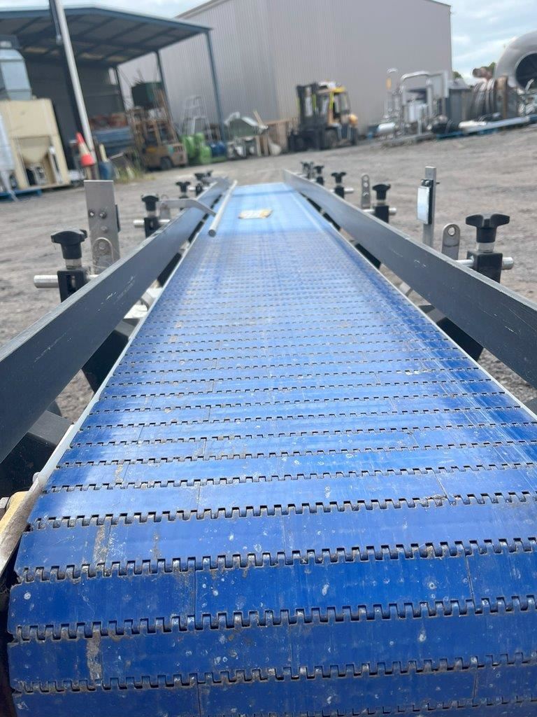 Flat belt, slat conveyor, 3.0m long x 420mm wide.