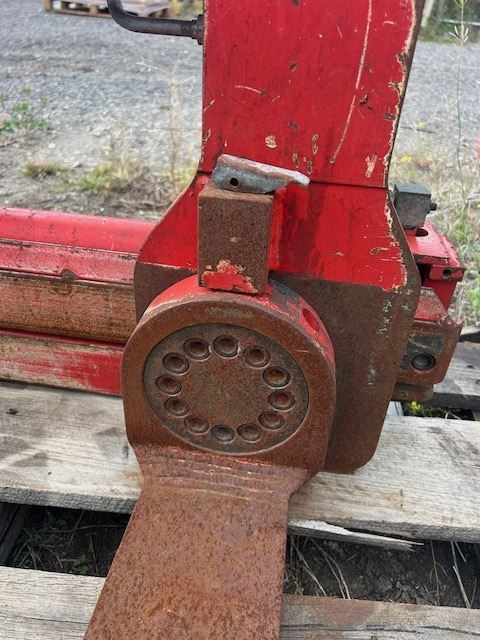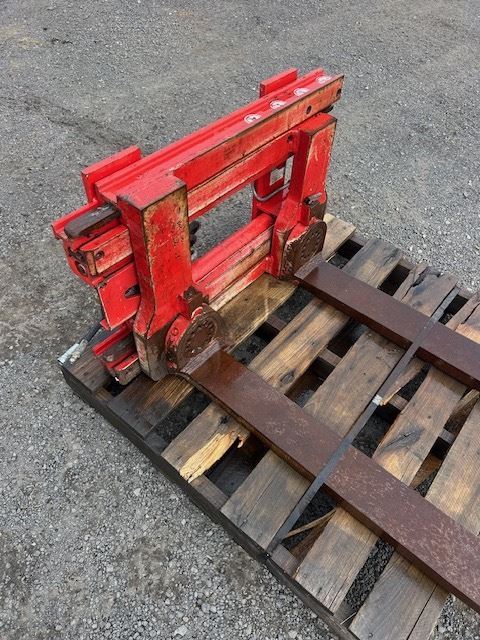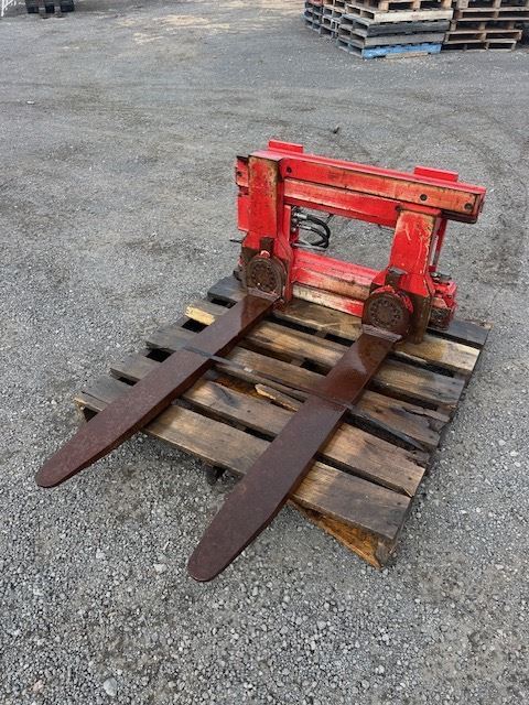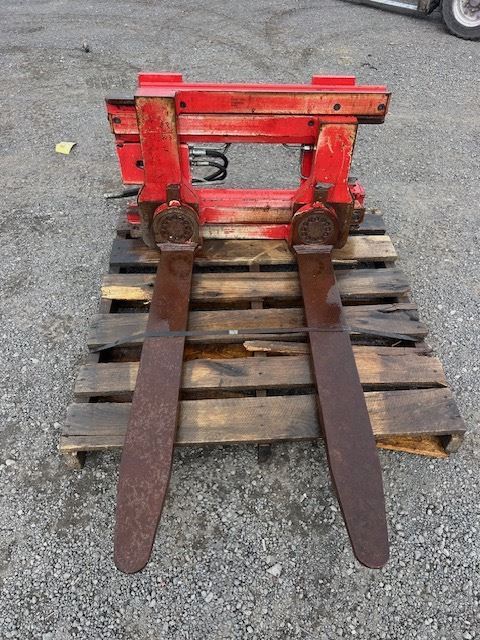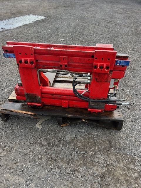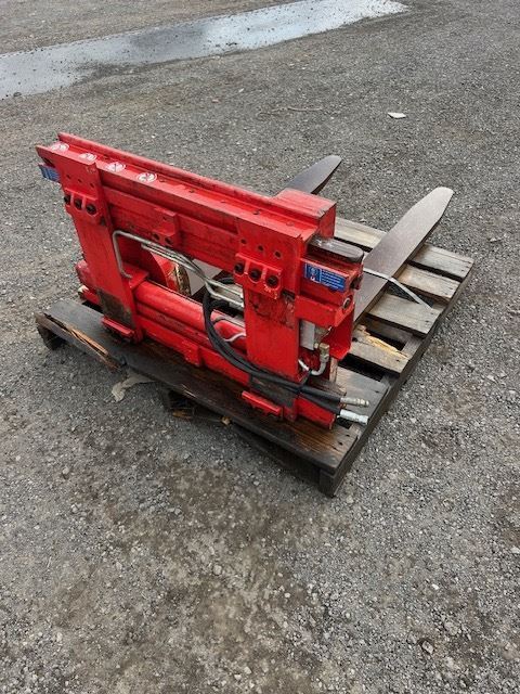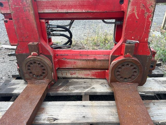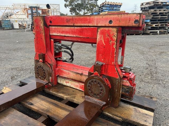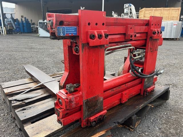 This Bolzoni forflift attachment allows for the forks to be moved in and out (hydraulically) as well as having the blades rotated (manually) so they can be used as a clamp forklift.