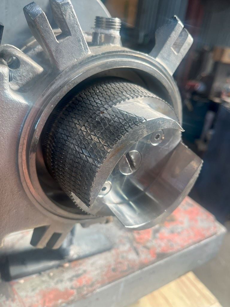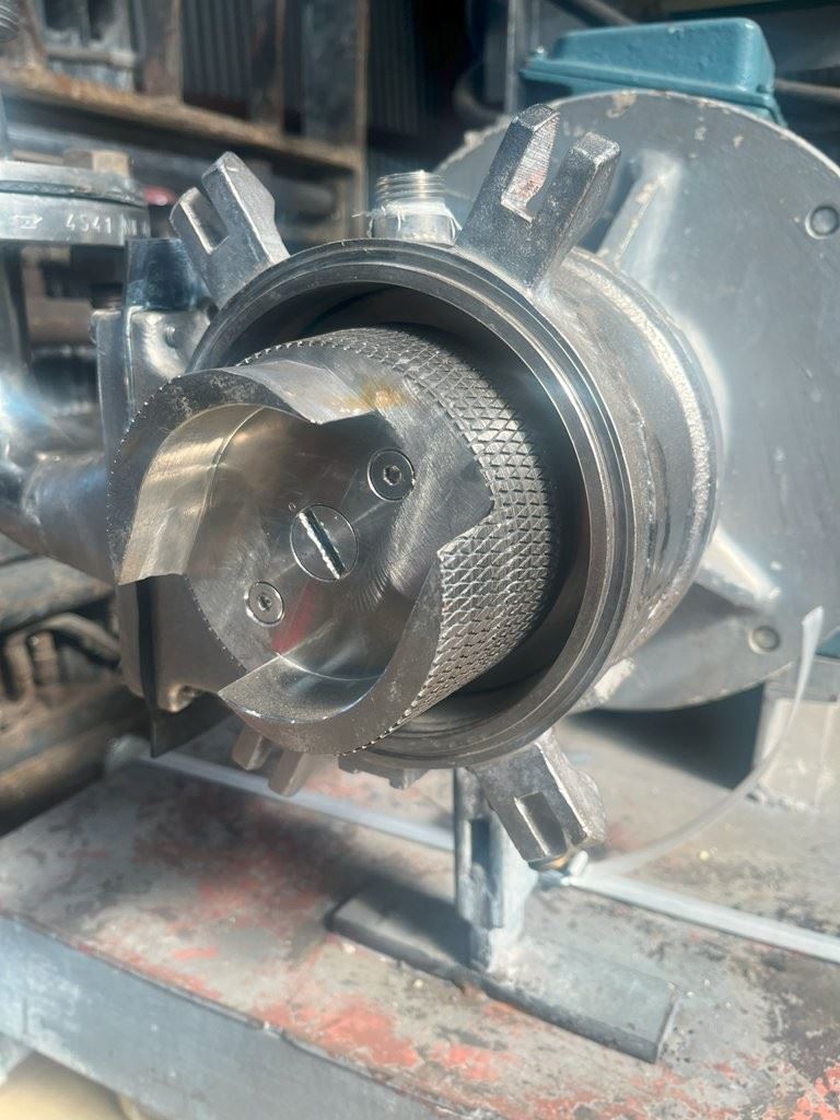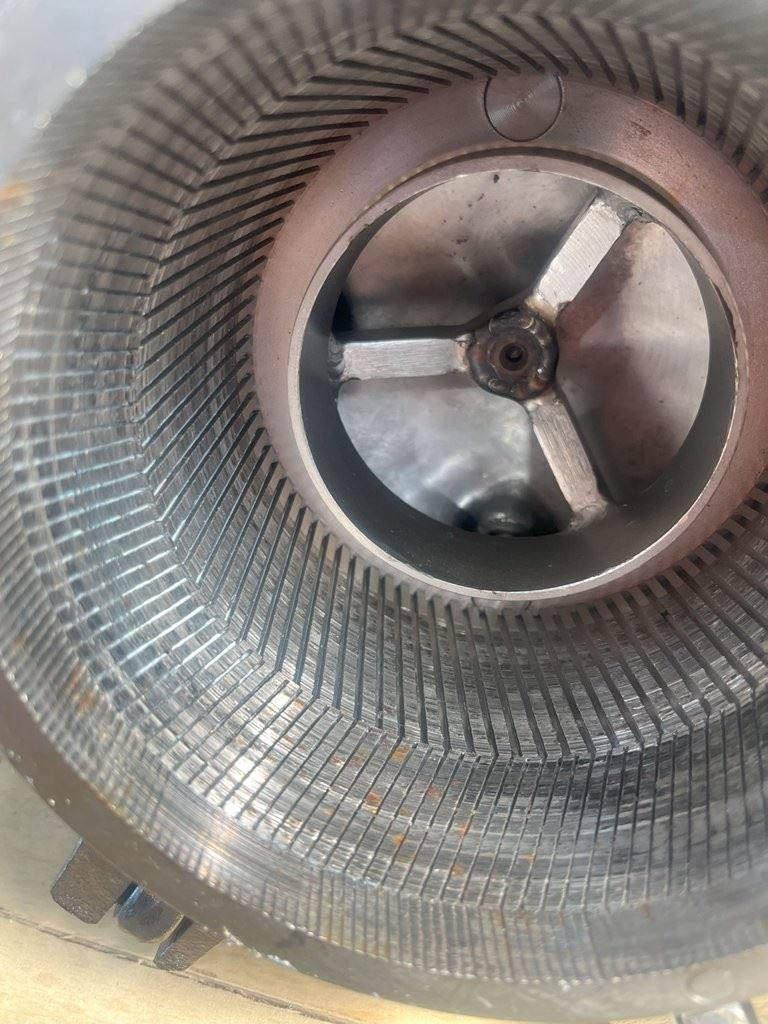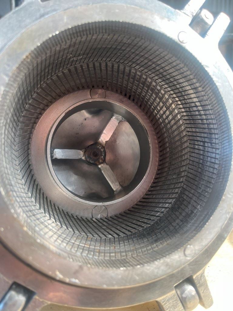 The slurry is subjected to high shearing, cutting and rubbing forces between two adjustable grinding heads. The stator is fixed and the rotor turns at 2910rpm.