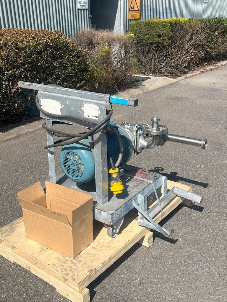 Fitted with a DOL starter and mounted to a steel frame on wheels.