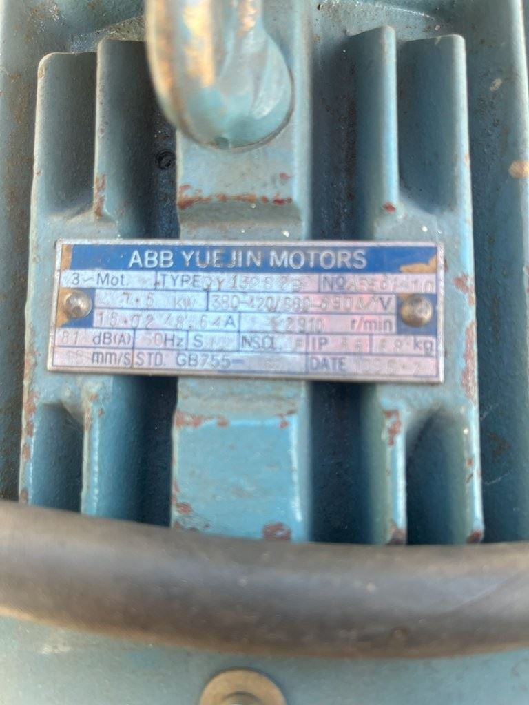 3 Phase, 415V, 7.5kW, 2910RPM electric motor.