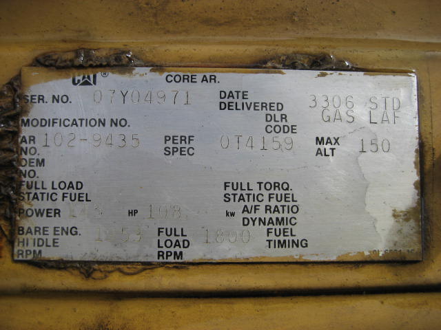 CAT G3306 Engine, LPG or Natural Gas fired, 6 cylinder, with a 400cfm Sullair Rotary Screw Compressor fitted, 11280hrs, 145hp, 1800rpm.