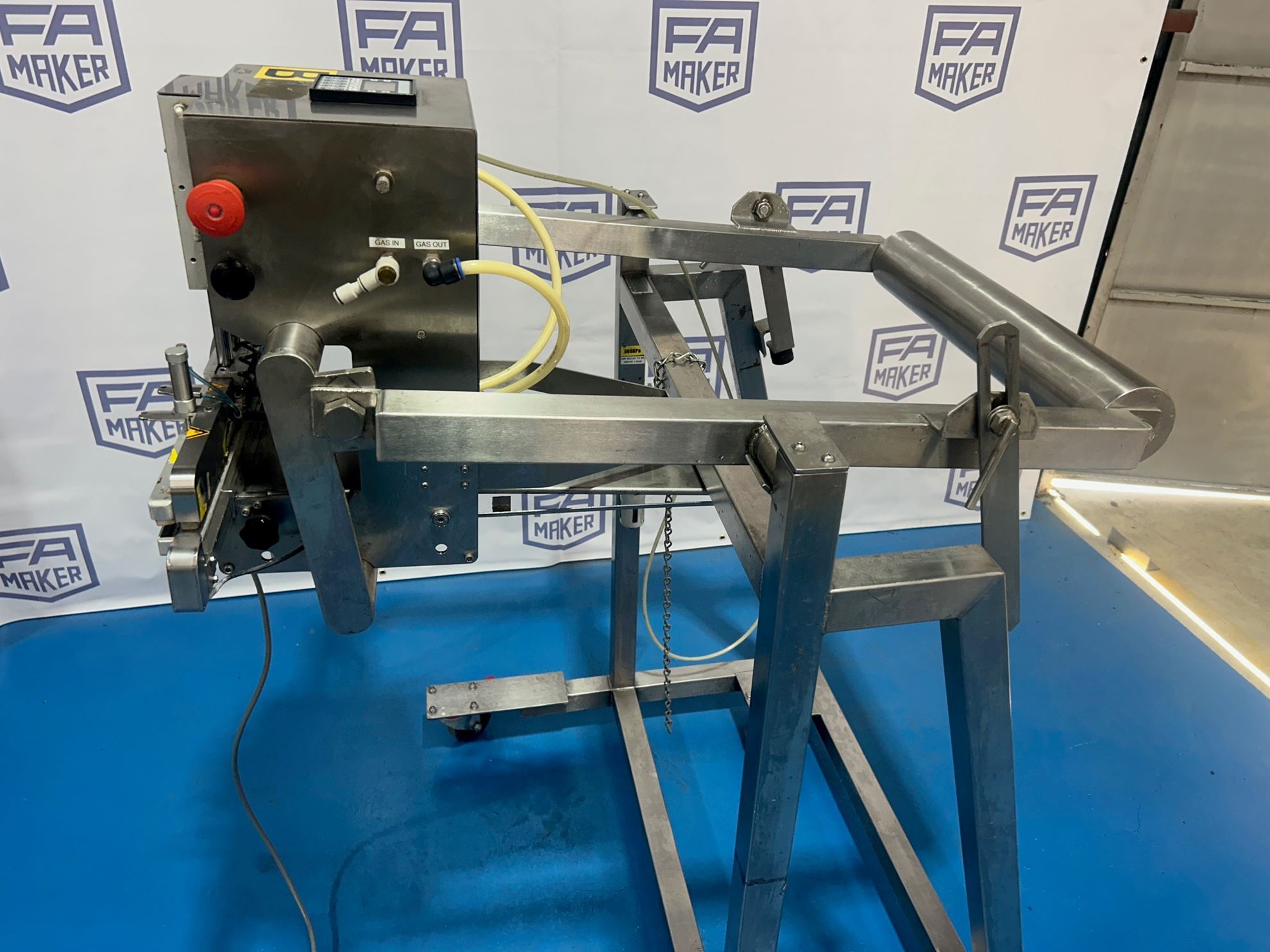 AV Sealer is a flexible solution for low-to-medium volumes of fresh cut packaging and sealing needs. Positioned as a bench stand, it is designed to operate manually. It allows for the sealing of plastic bags while also gas flushing the bag at the same time. Gas is blown in via the 2 prongs and retract as the bag is sealed.