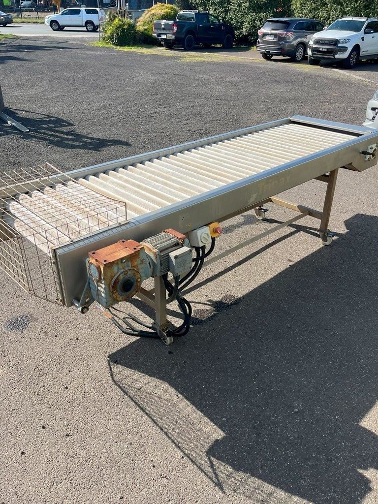 Rollers gently turn product at a constant speed, allowing inspectors to view all sides.