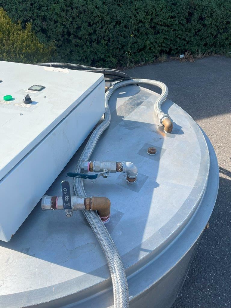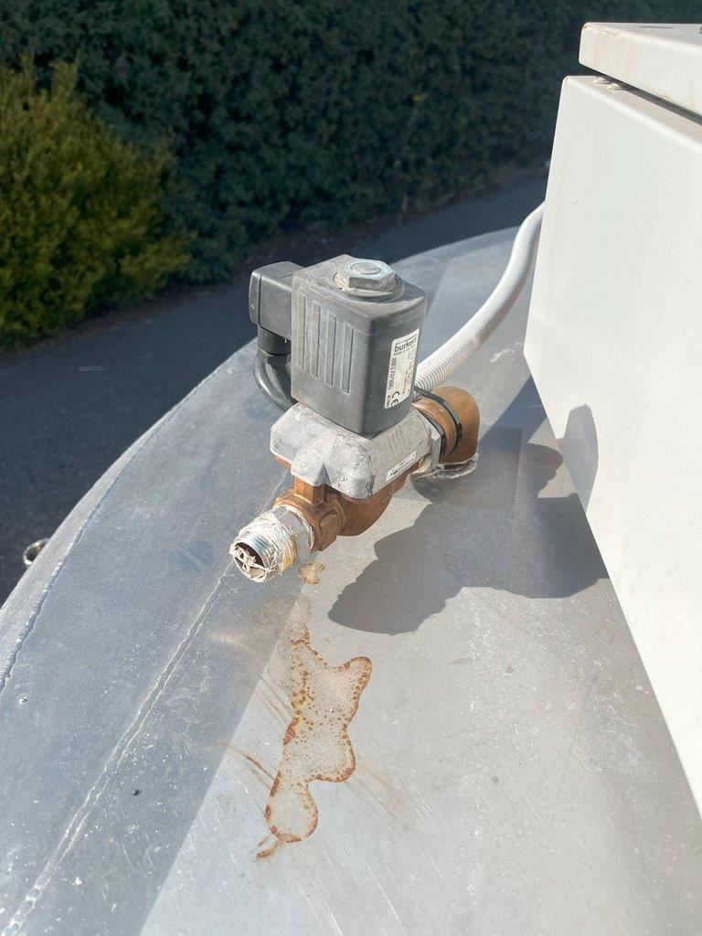 Level sensor which communicates to through control box to inlet solenoid allowing tank to be refilled when level is low.
