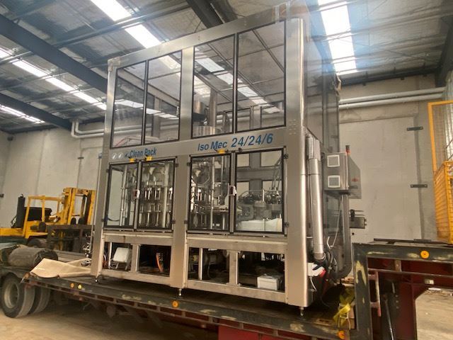 ISO MEC 24 / 24 / 6 AV – PF PP Bottle Filler.  Suitable to bottle KOMBUCHA into GLASS & PET BOTTLES by means of a THREE-BLOCK composed by a 24 head gripper rinsing turret, a 24 valve counter pressure filler and a 6 head capper pick and place which can do ROPP and PRE-THREADED CAPS. Aluminium cap and plastic cap.