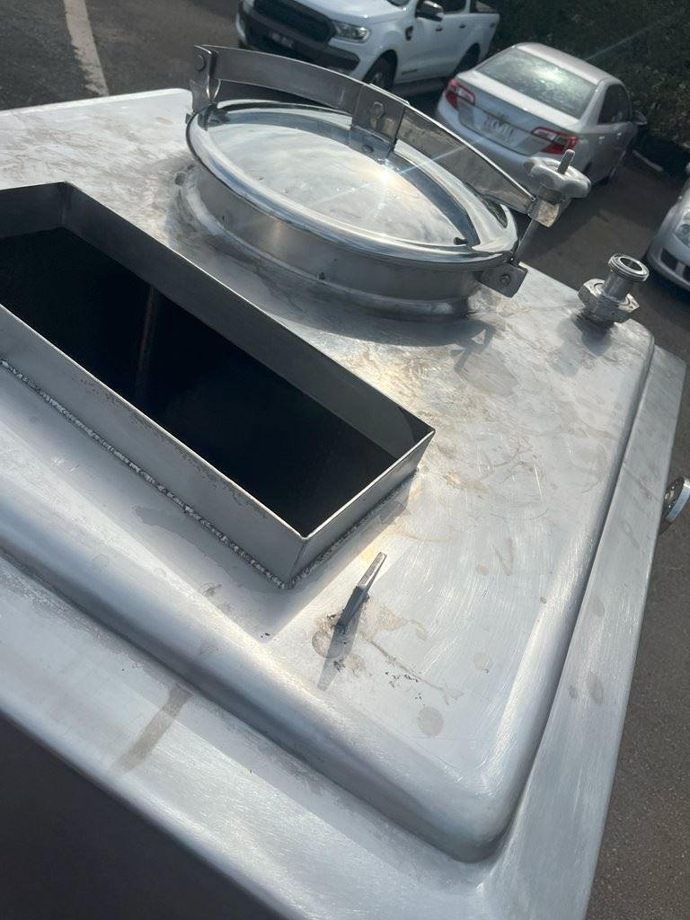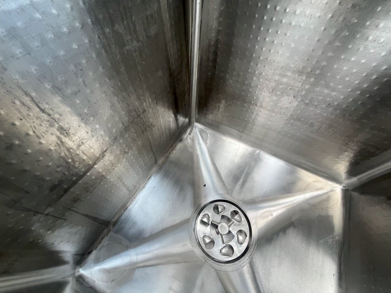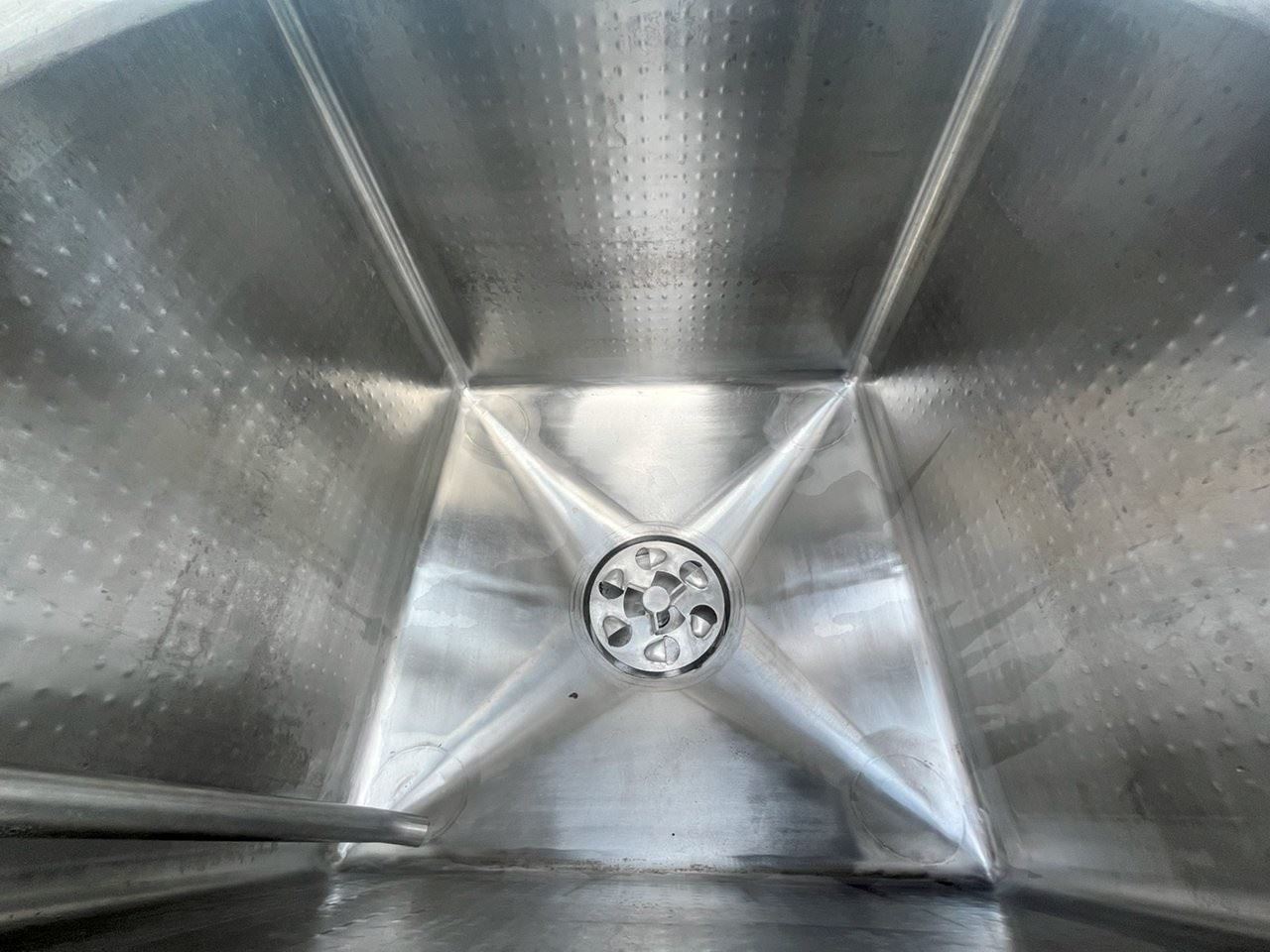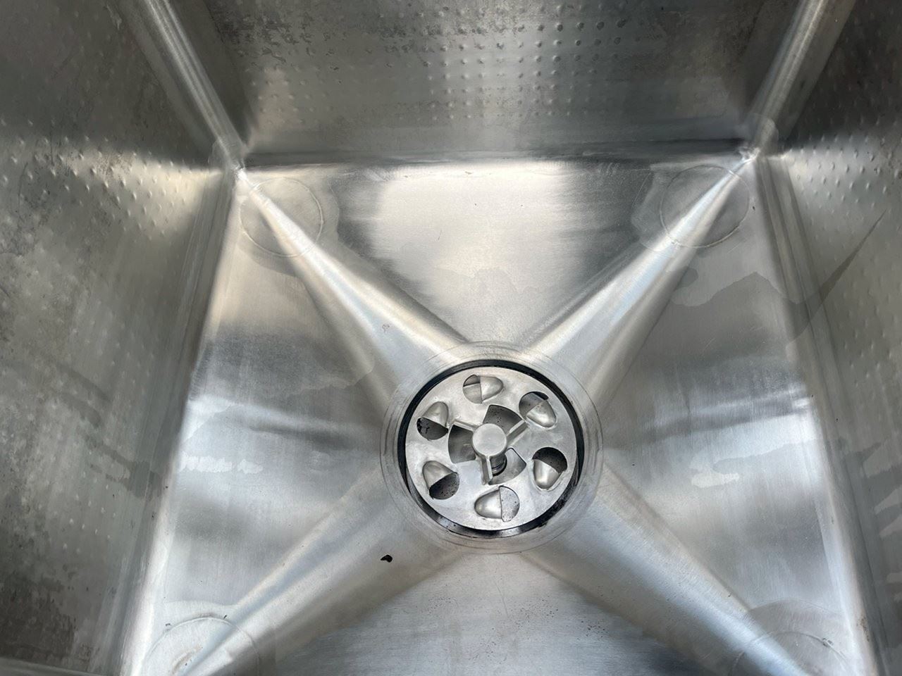 This unit is a square shaped tank with a bottom mounted high speed mixing impeller. The impeller generates an axial flow, which is re-circulated in the tank via the surrounding mixer chamber. The square shaped tank ensures that there will be no forced rotation of liquids in the tank (forced vortex). On the contrary a free vortex will be created which sucks the liquid down towards the mixing impeller (like in a bath tub outlet, a plug-hole).