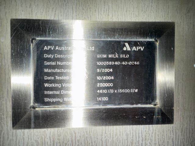 Built by APV Australia in 2004, these Silo’s were last used to hold Skim milk at a large dairy processing factory.