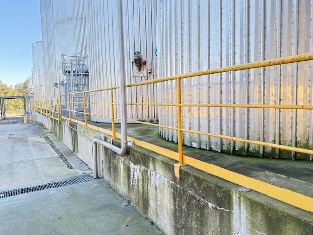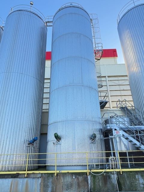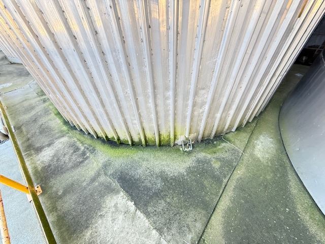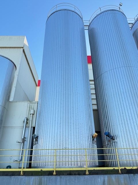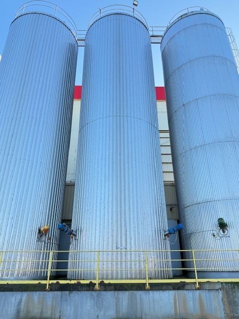 The Silo’s are free standing and secured to a concrete floor with the man whole and connection points located inside the factory wall.