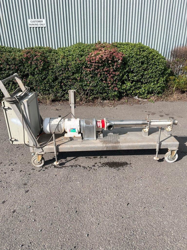 Variable speed drive up to 107 RPM Mounted to a stainless steel trolley.