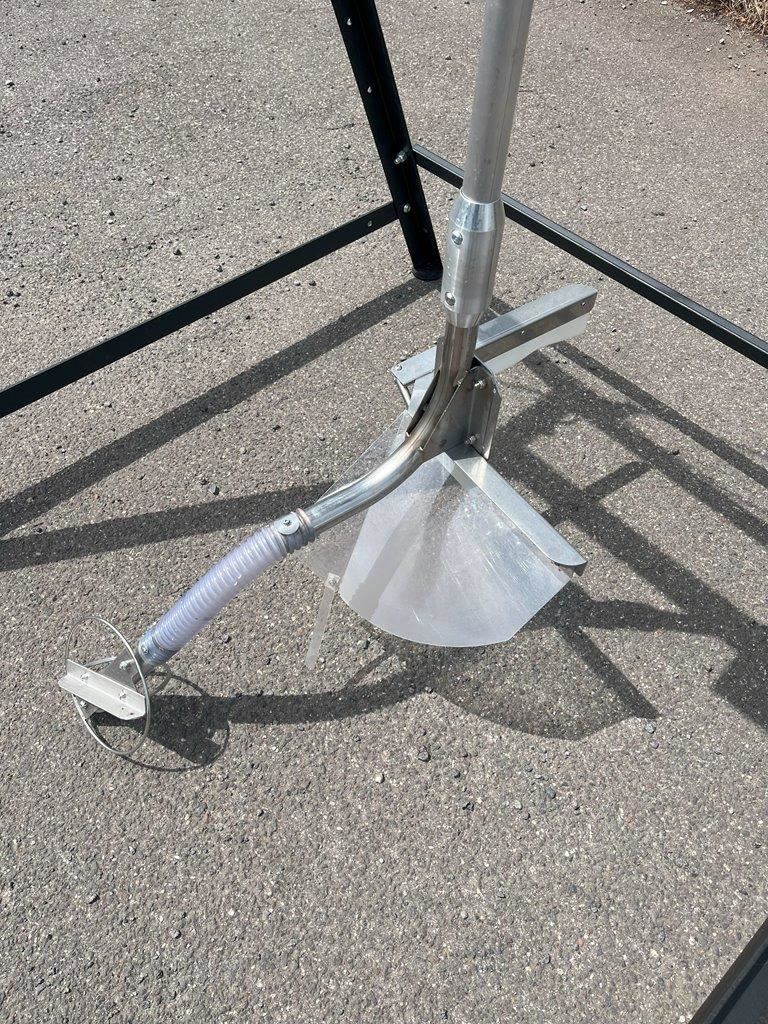 The sweeper probe, connected to the J tube, uses a flexible hose to constantly sweep the material from the edges of the container. The flattening plate ensures material is evenly spread to the edges of the container.