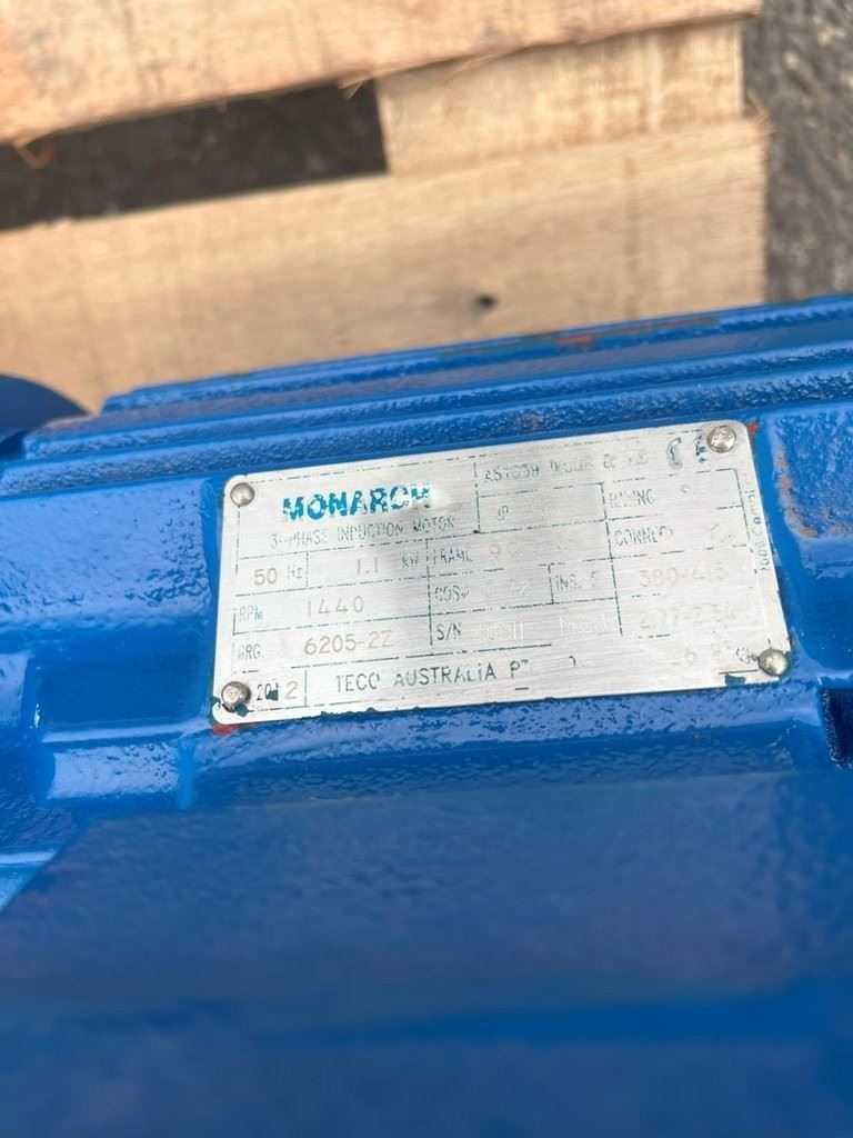 3 Phase, 415V, 1.1kW, 1440 RPM gearmotor with a final output speed of 280 RPM.
