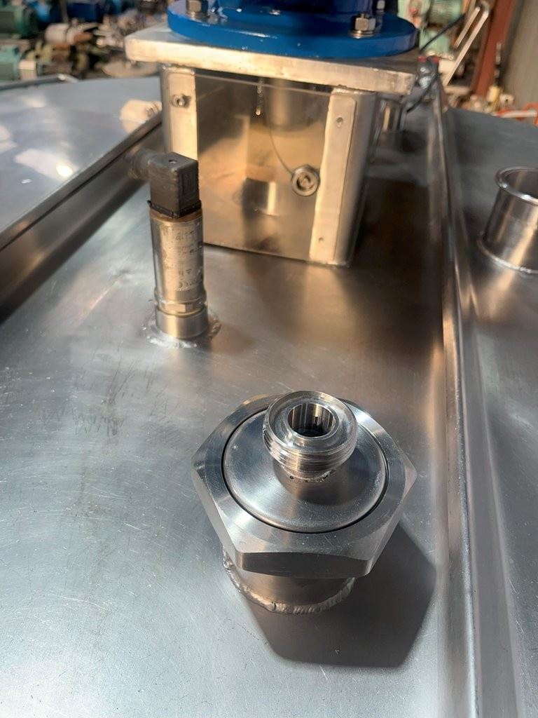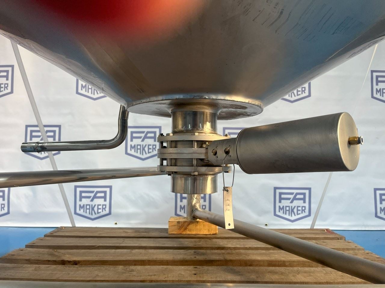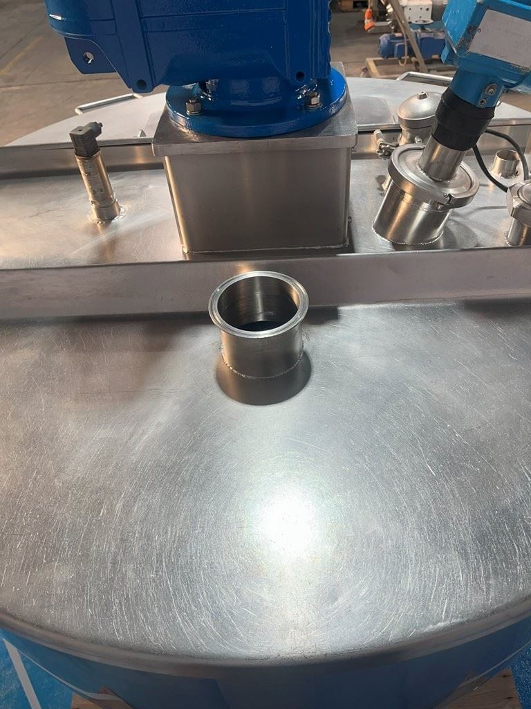 Tank has a 4 inch outlet with a pneumatically operated ss butterfly valve.