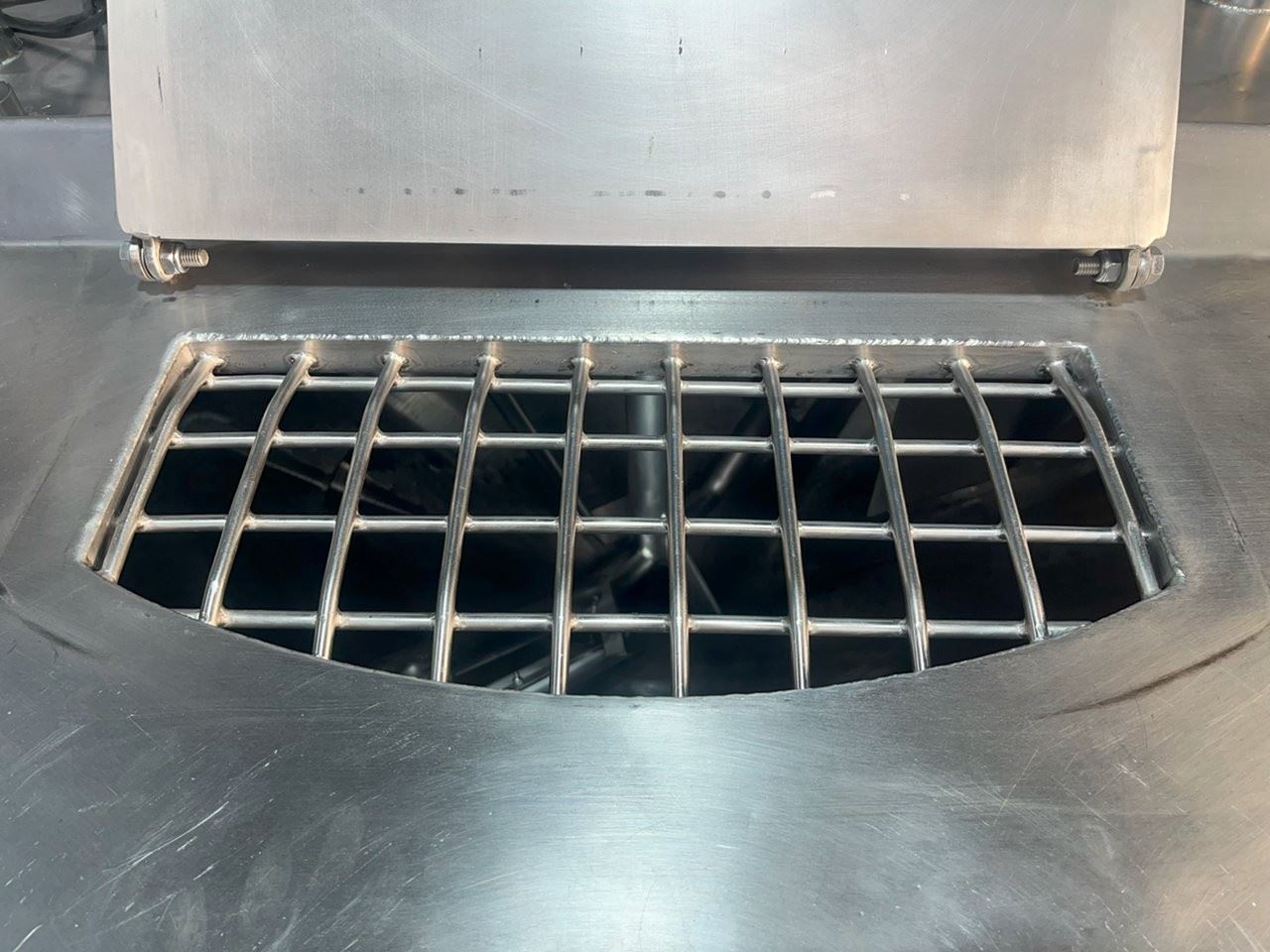 Unit has two hinged lids with safety switches attached. One lid has an inspection lid on top also.