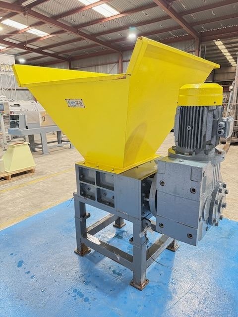 This unit has 220mm between shaft centres which allows larger items to be effectively grabbed. Suitable for paper, plastics, glass, electronics destruction, wood offcuts, light metals, and plastic bottles.