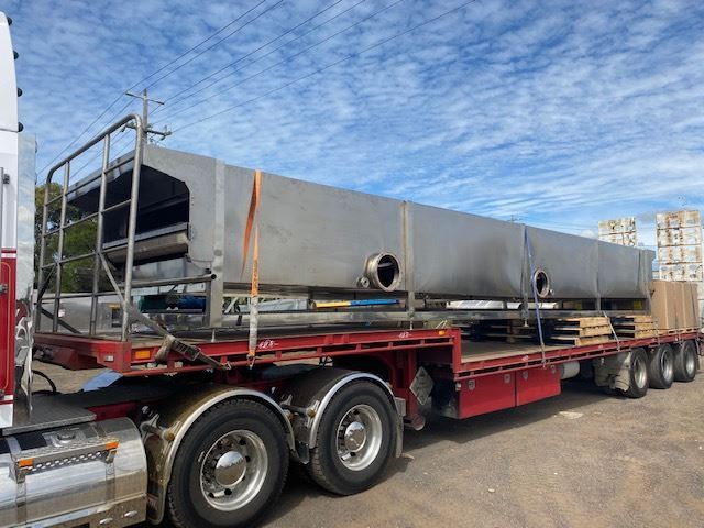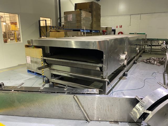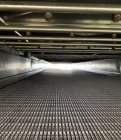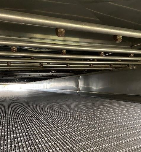 Stainless steel cooling/warming conveyor.