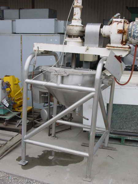 Size 750mm dia x 400mm deep, 70Litres, jacketed stainless bowl and variable speed drive.