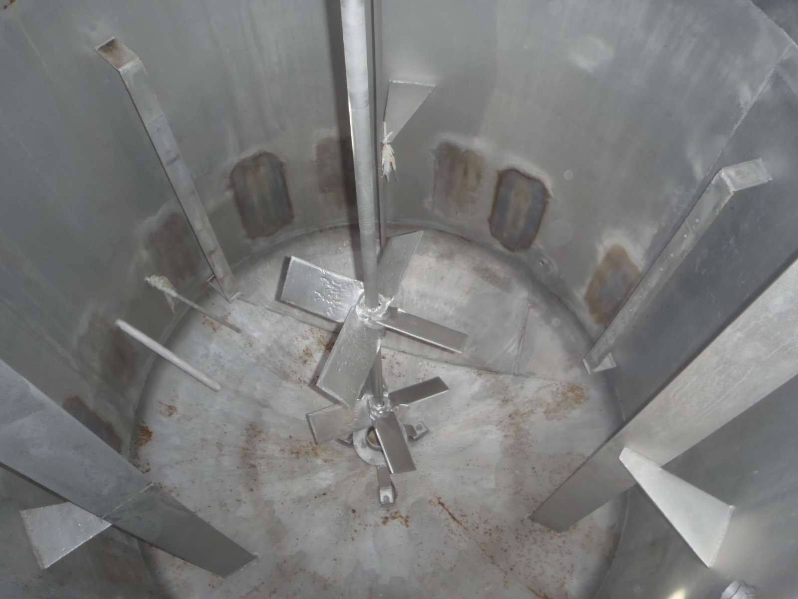 Conical bottom with an 1.1/2 inch outlet. Mixer is 1.5kw 210rpm.