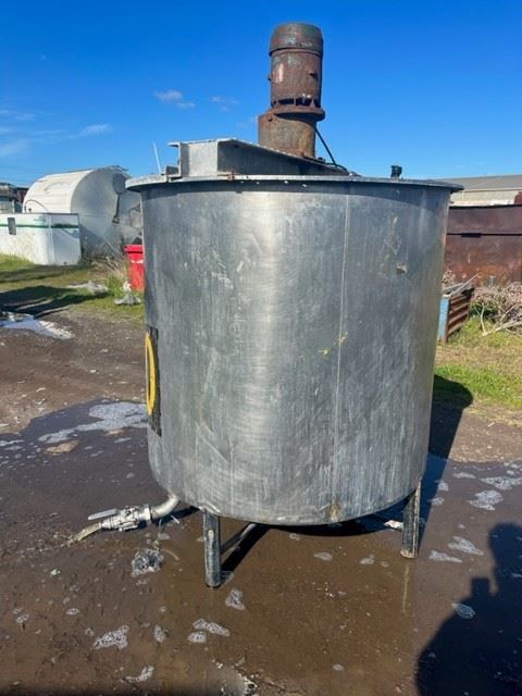 1200lt Stainless steel tank with 1.5hp 48 rpm agitator.