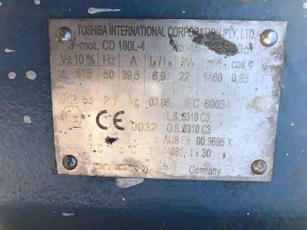 22kw Exd Toshiba 4 pole motor with dispersion blade.
