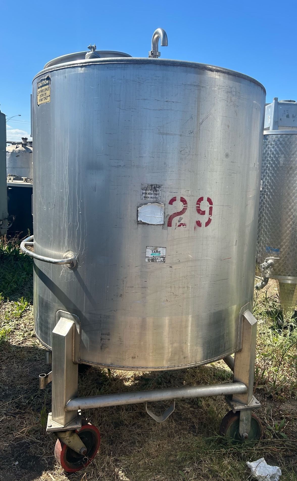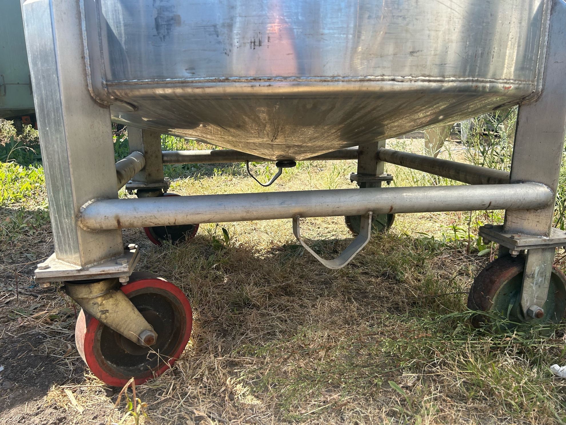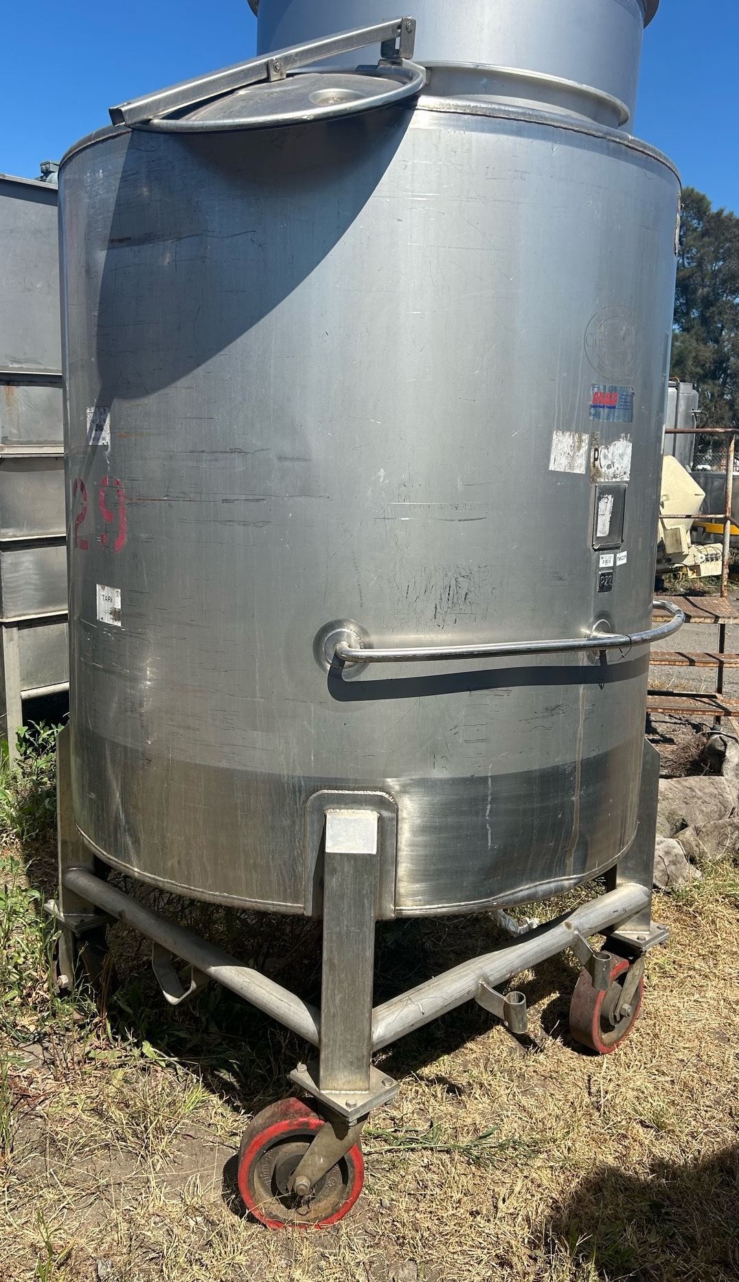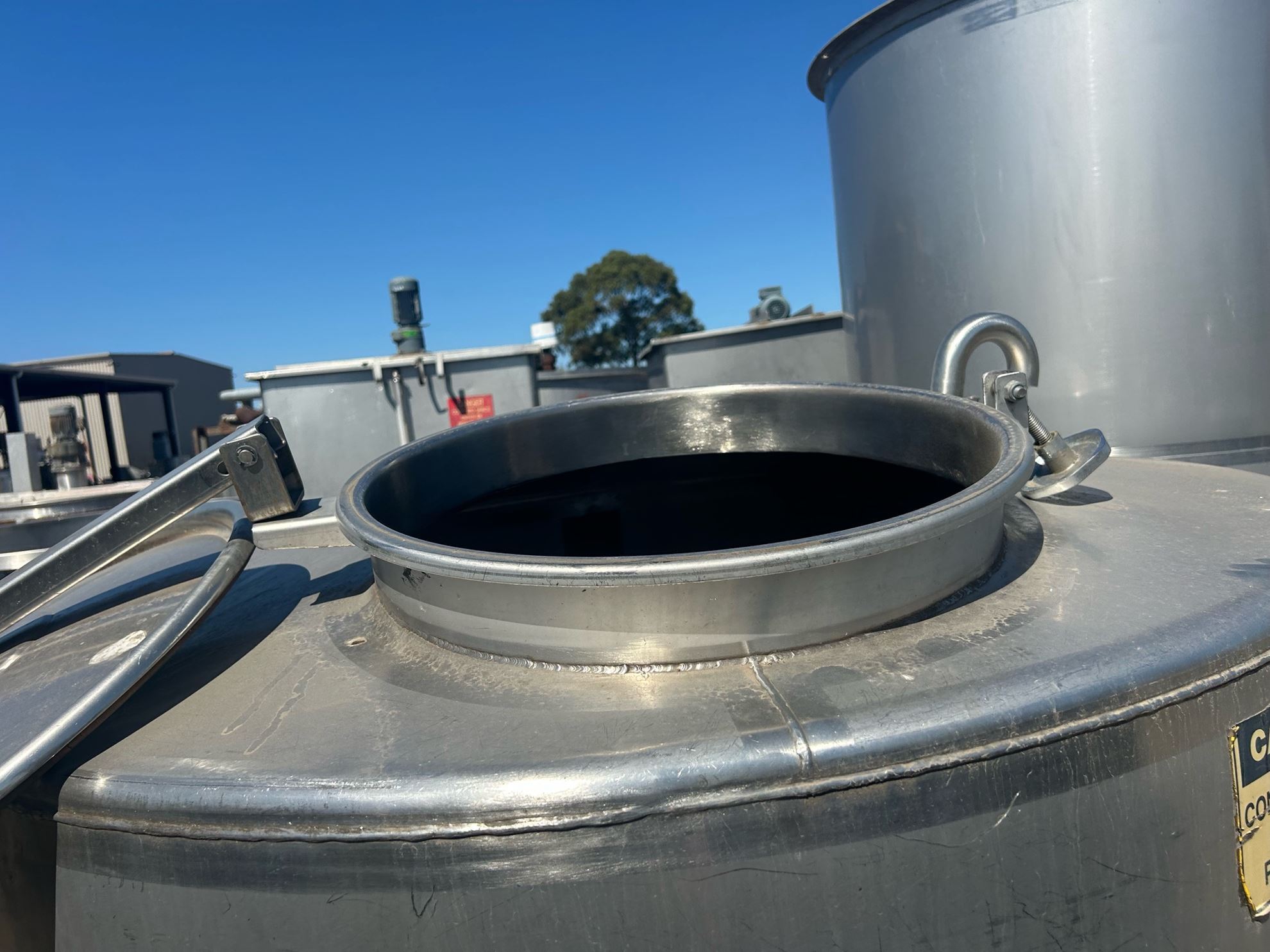 Closed top tank, conical bottom outlet (50mm), manhole in the top of the tank.