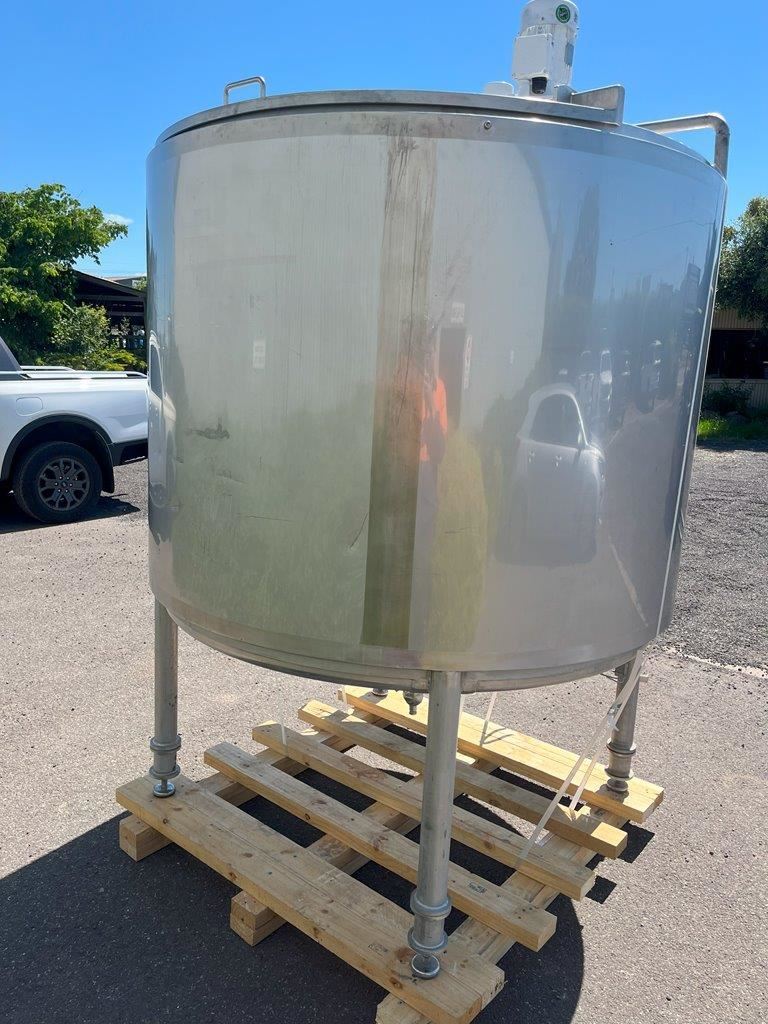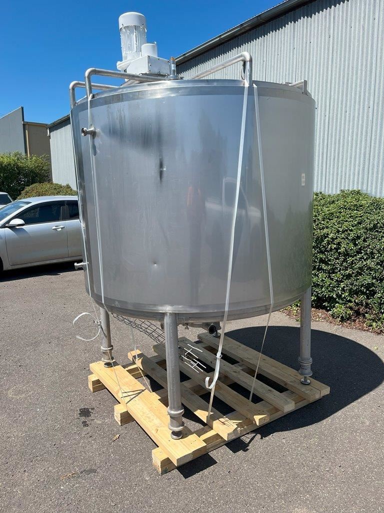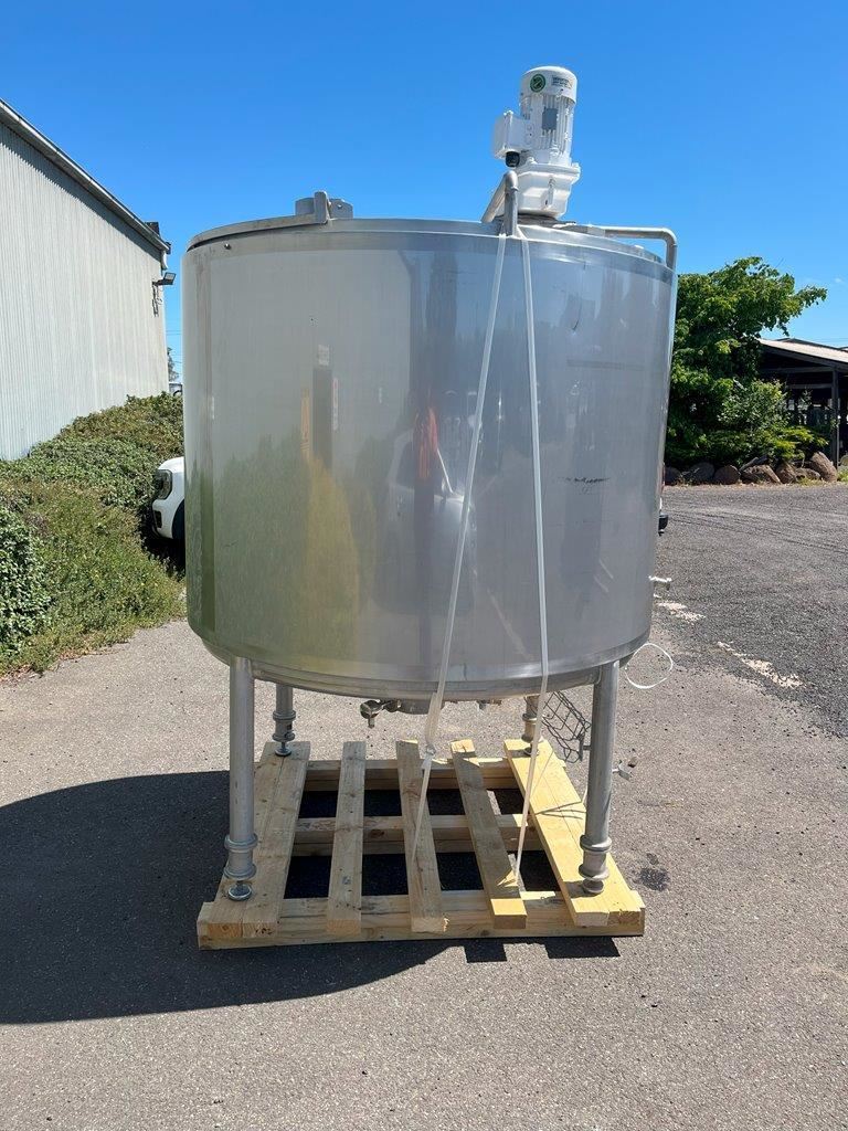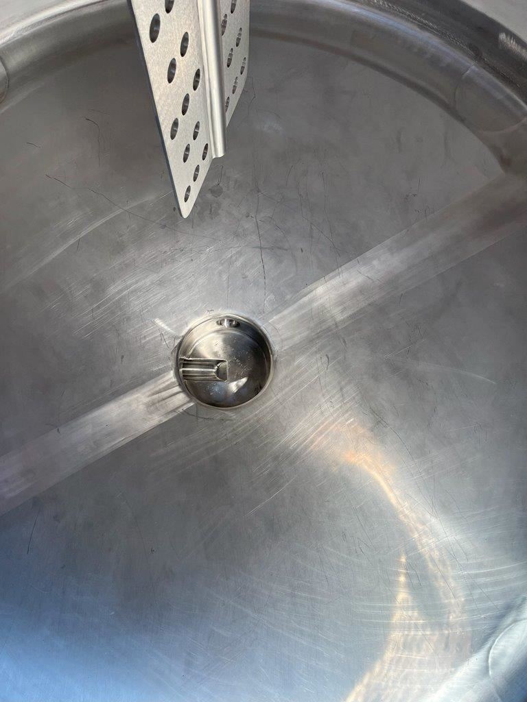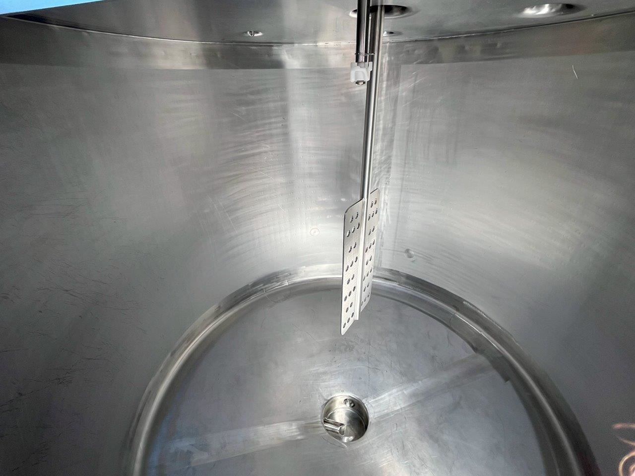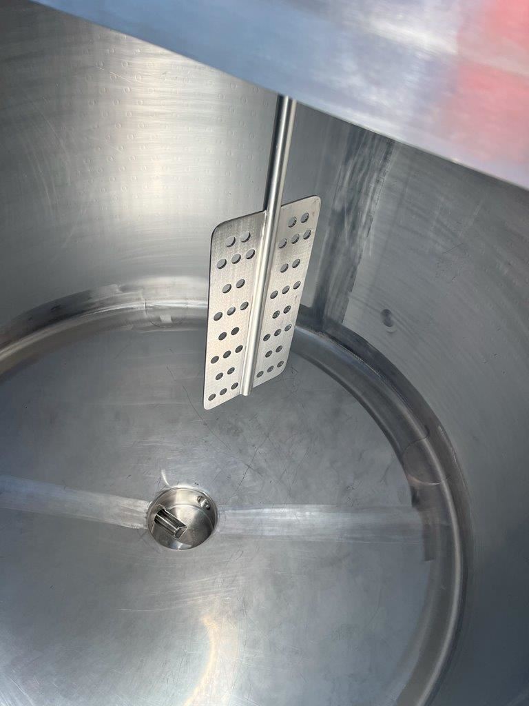 Stainless steel jacketed mixing tank.