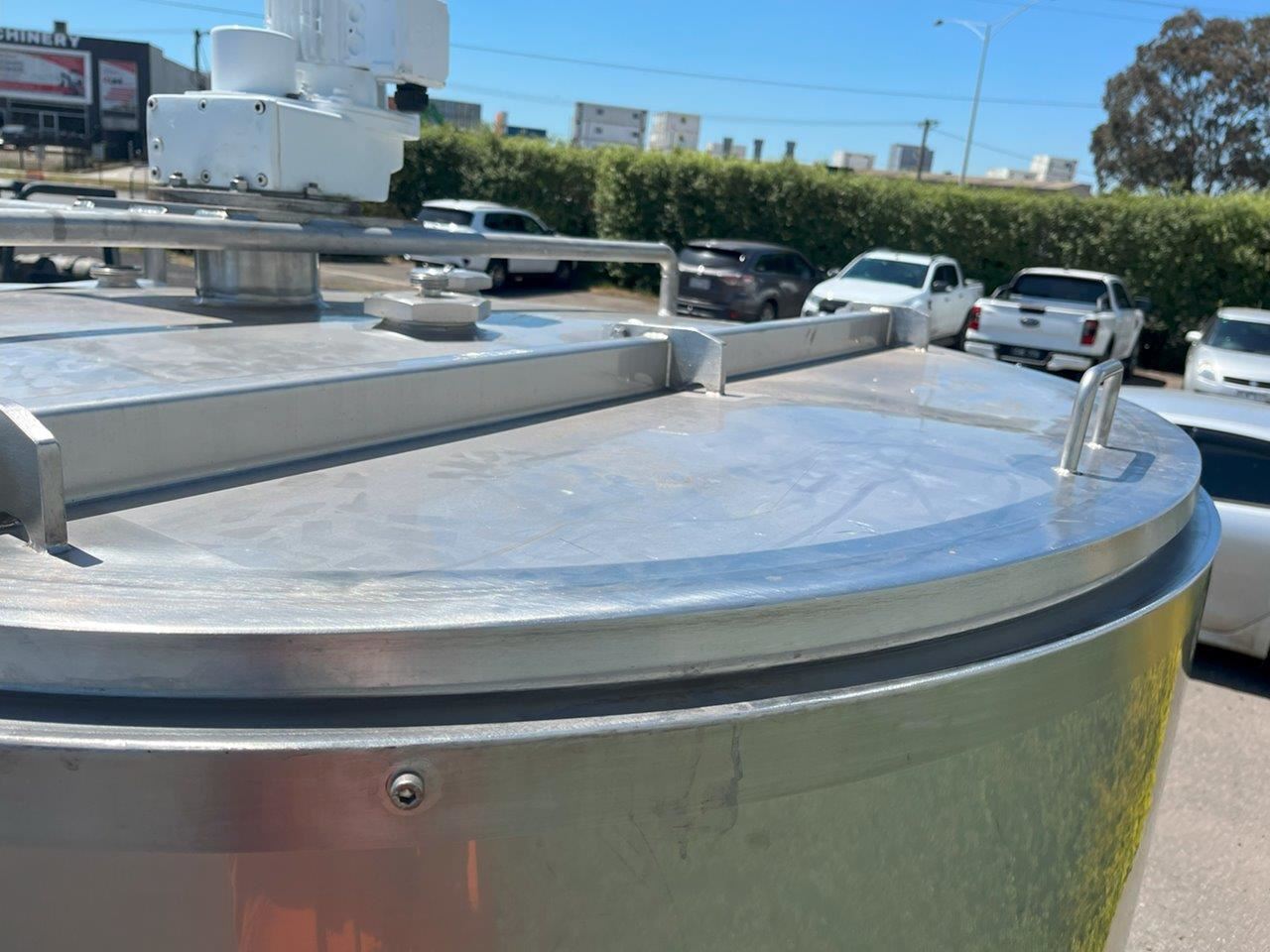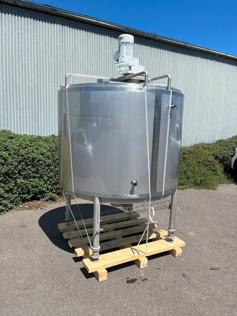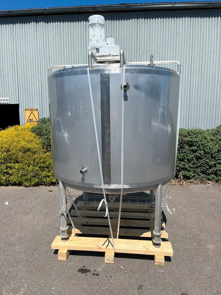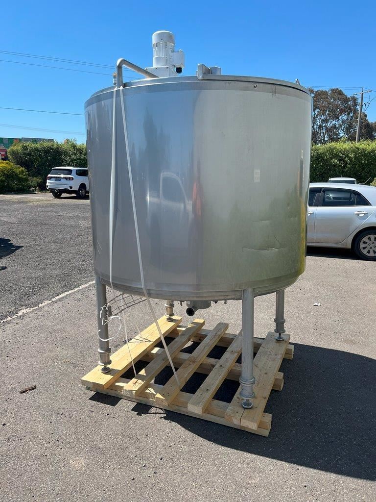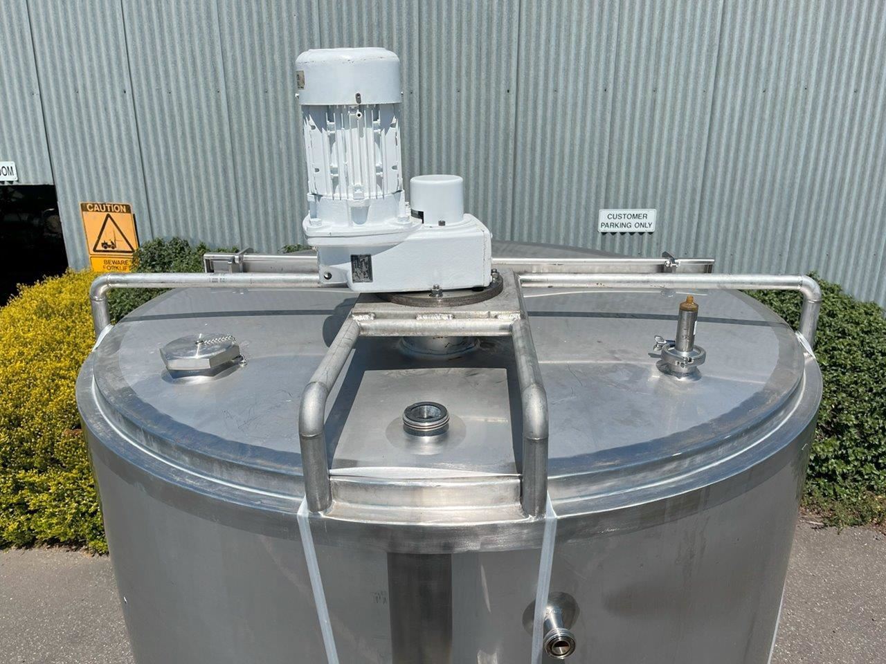 Stainless steel jacketed mixing tank.