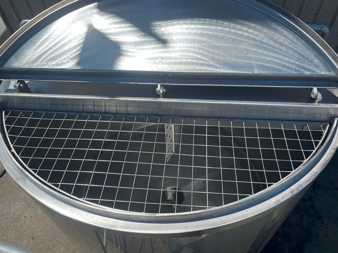 Dished bottom and enclosed top with hinged lid.
