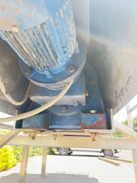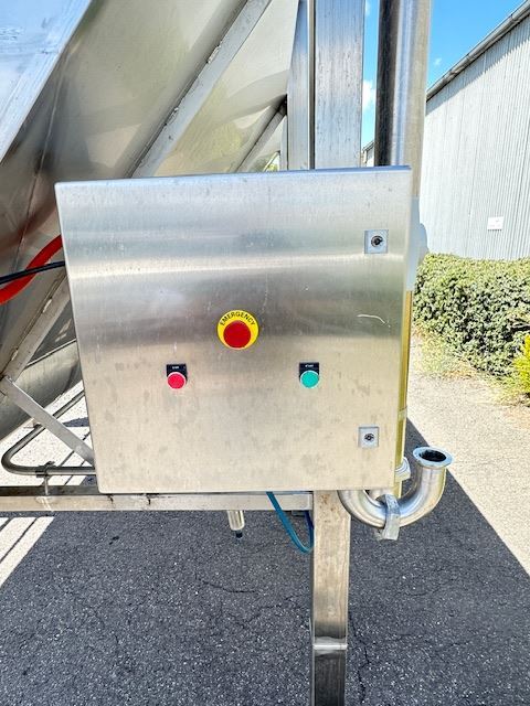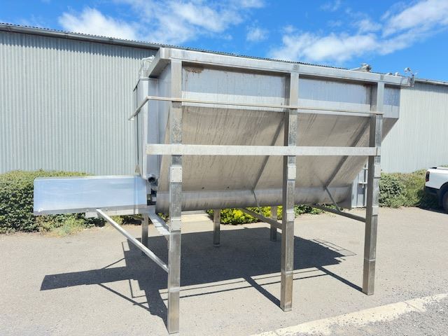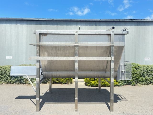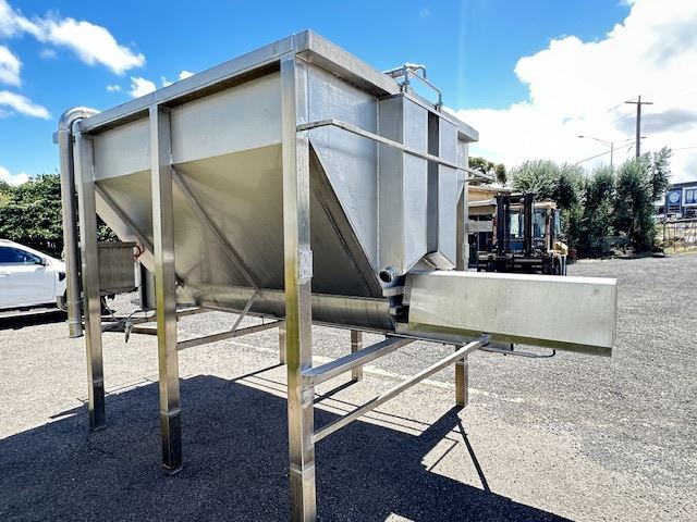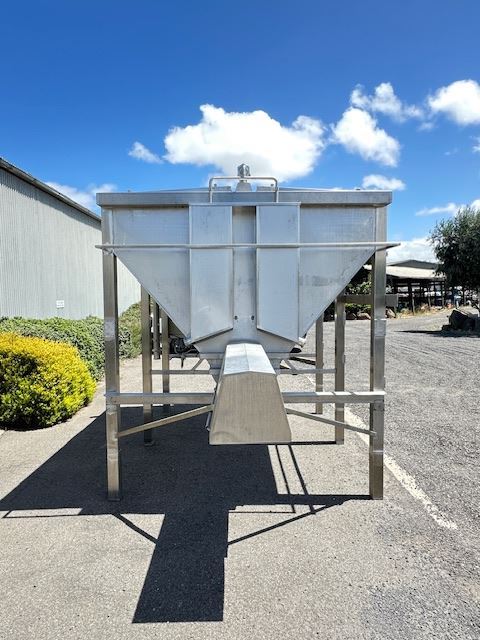 This hopper was designed for a cheese plant but was never installed. The manufacture has used 316L SS steel for all parts and installed CIP spray balls in the top for easy cleaning.