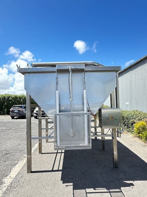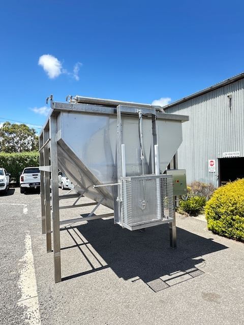 The hopper has a 500mm screw auger at the bottom of the hopper so that all products can be discharge out of the hopper via the sliding door.