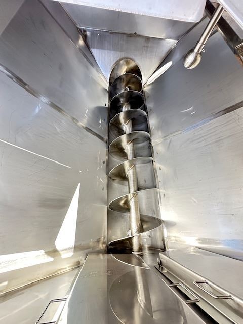 The auger is fitted with a 2.2kw WEG inline gearbox and the discharge outlet opening is 600mm x 600m.
