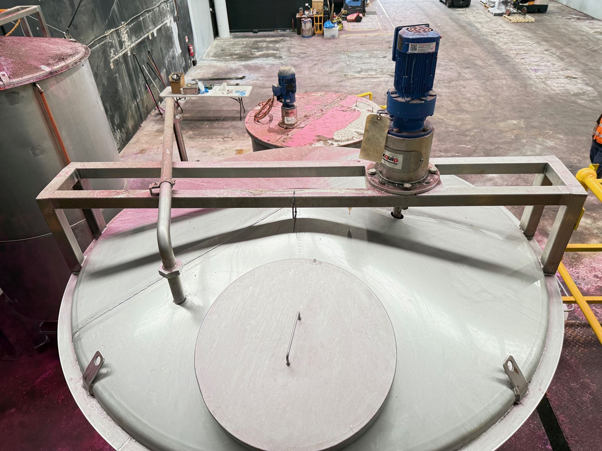 Stainless steel 10,000lt mixing tank, last used to mix vegetable-based marker dye.
