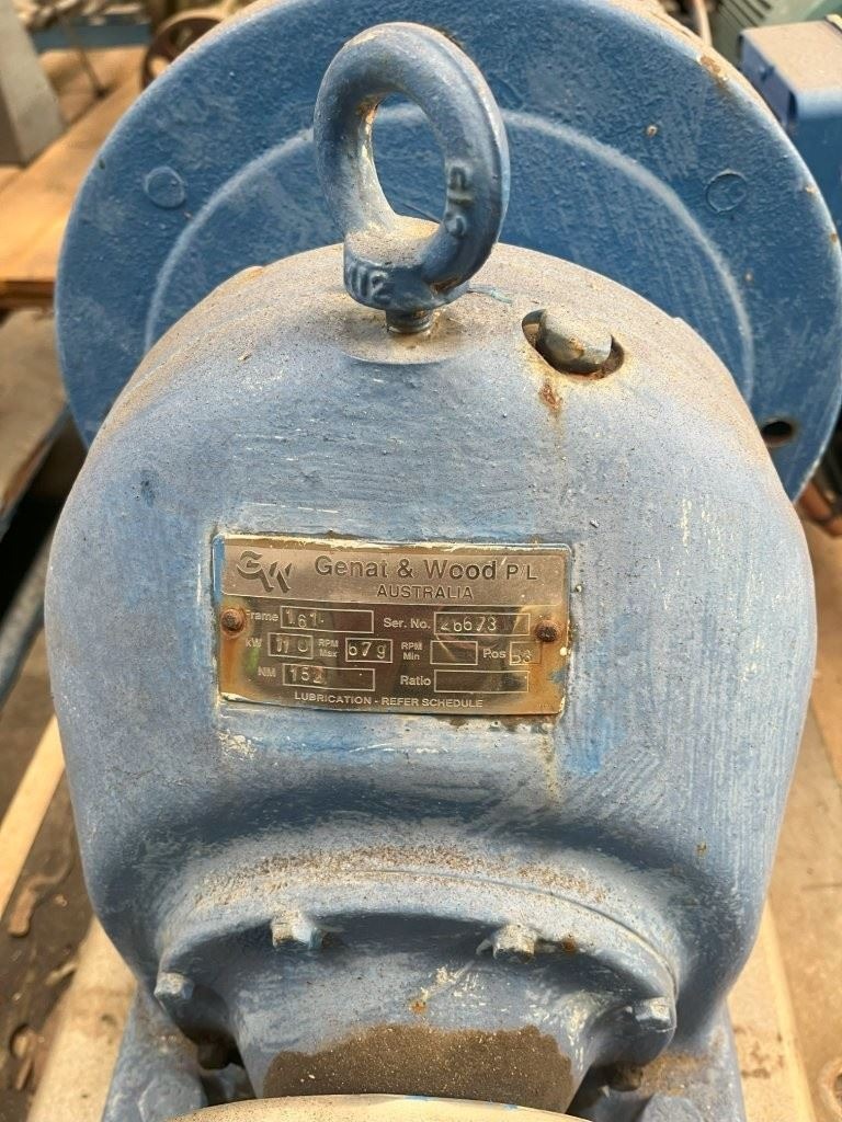 3 Phase, 415V, 20.5A, 11kW gearmotor with final speed of 679RPM.