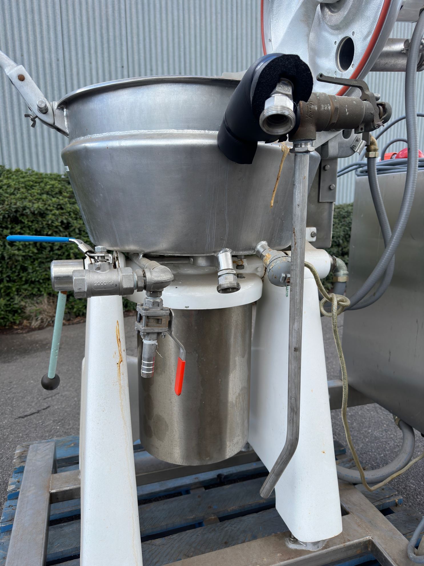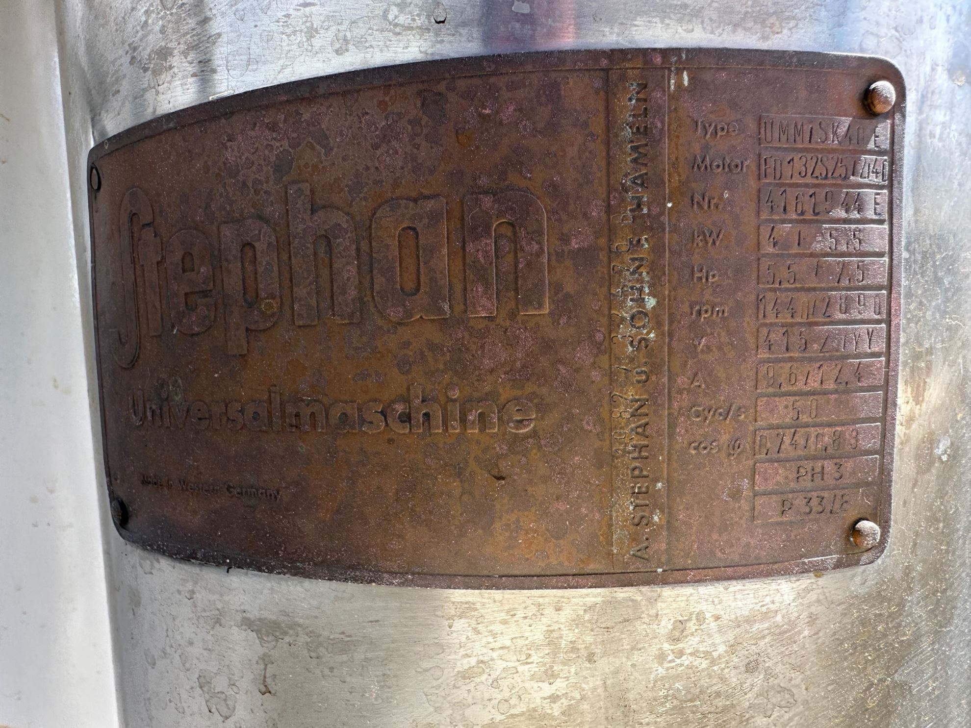 Used 40lt Stephan UMM/SK40E machine for cutting, mixing and cooking products. The machine has a double wall for indirect heating and steam injection points in the bowl for directly heating the product. This machine is fitted with a high speed cutter, slow turning wall scraper and can be tilted to remove the product from the bowl.