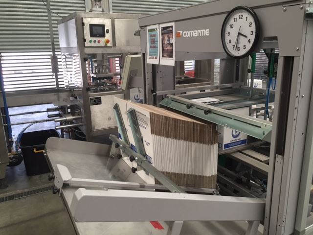 makes folding. Performs the operation of the lower lids closing and bonding. In this way, the boxes are ready in front of the robot for filling