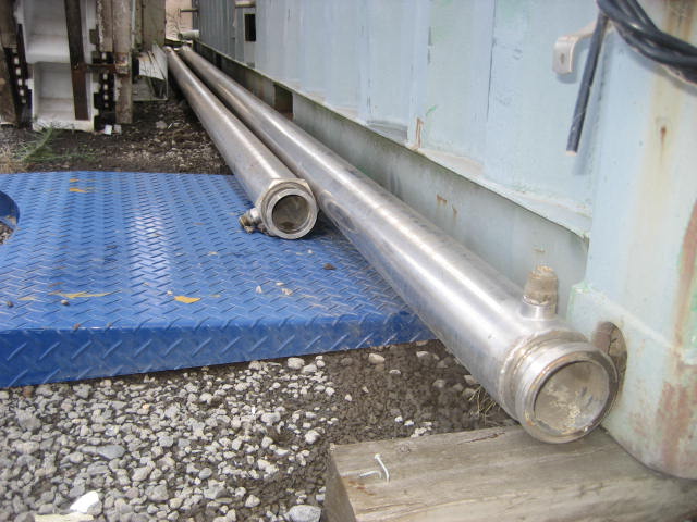 Monotube Jacketed S/S Heat exchanger. 6mt Long Internal bore 70mm. External Diameter 100m. Last used to Heat Chocolate.