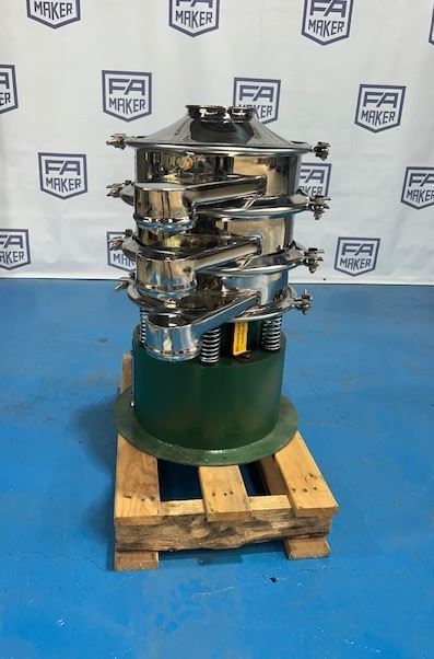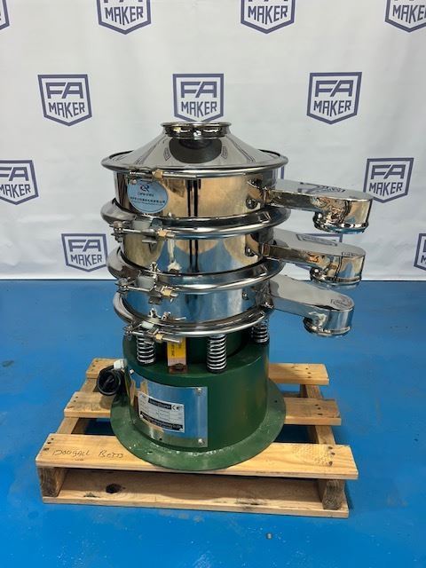 Stainless steel vibrating sieve fitted with self cleaning ball decks.